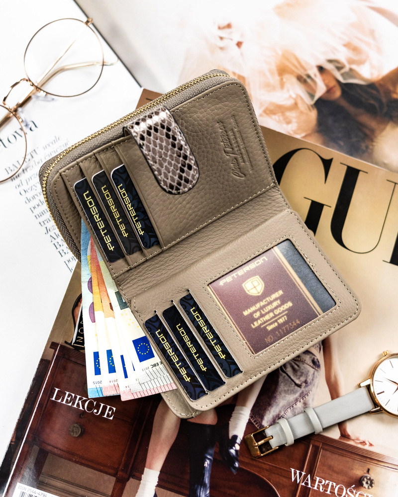 Kompaktowy portfel damski z egzotycznym wzorem – Peterson