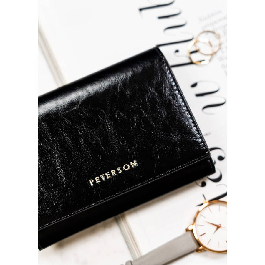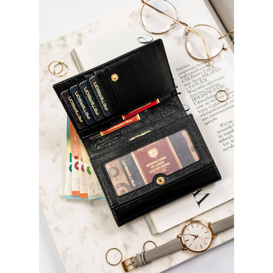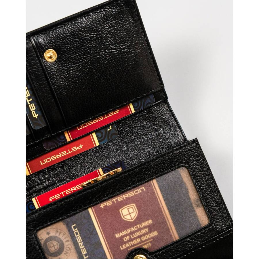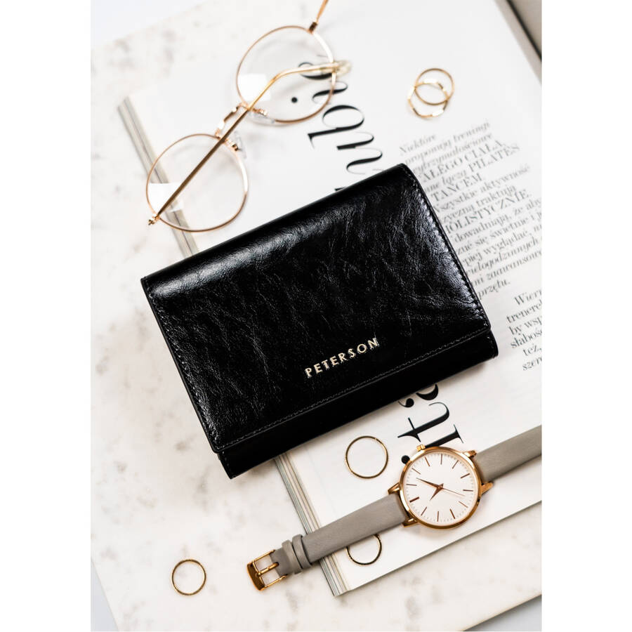 Kompaktowy portfel damski ze skóry naturalnej w czarnym kolorze zamykany na zatrzask – Peterson