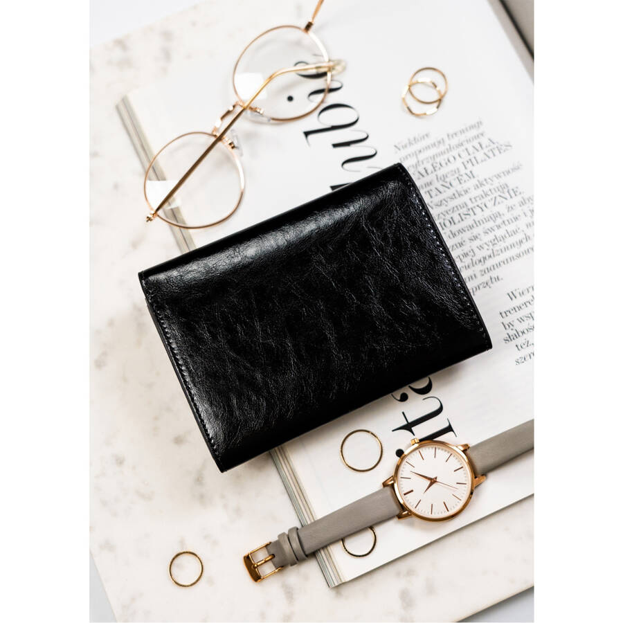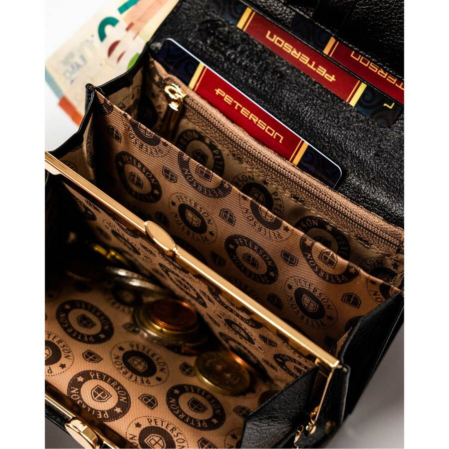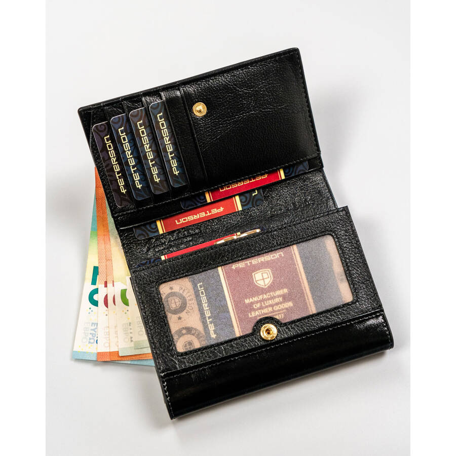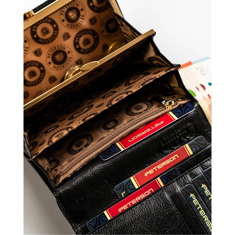 Kompaktowy portfel damski ze skóry naturalnej w czarnym kolorze zamykany na zatrzask – Peterson