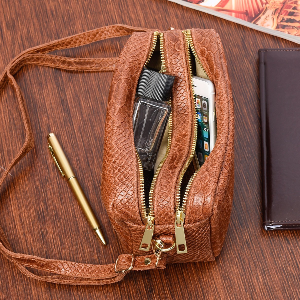 Mimo niewielkich rozmiarów torebka jest bardzo pojemna – oprócz telefonu i portfela, zmieści się w niej wiele drobiazgów potrzebnych na co dzień. Mały kalendarz, etui na okulary i  słodka przekąska – bez problemu włożysz je do tej torebki!