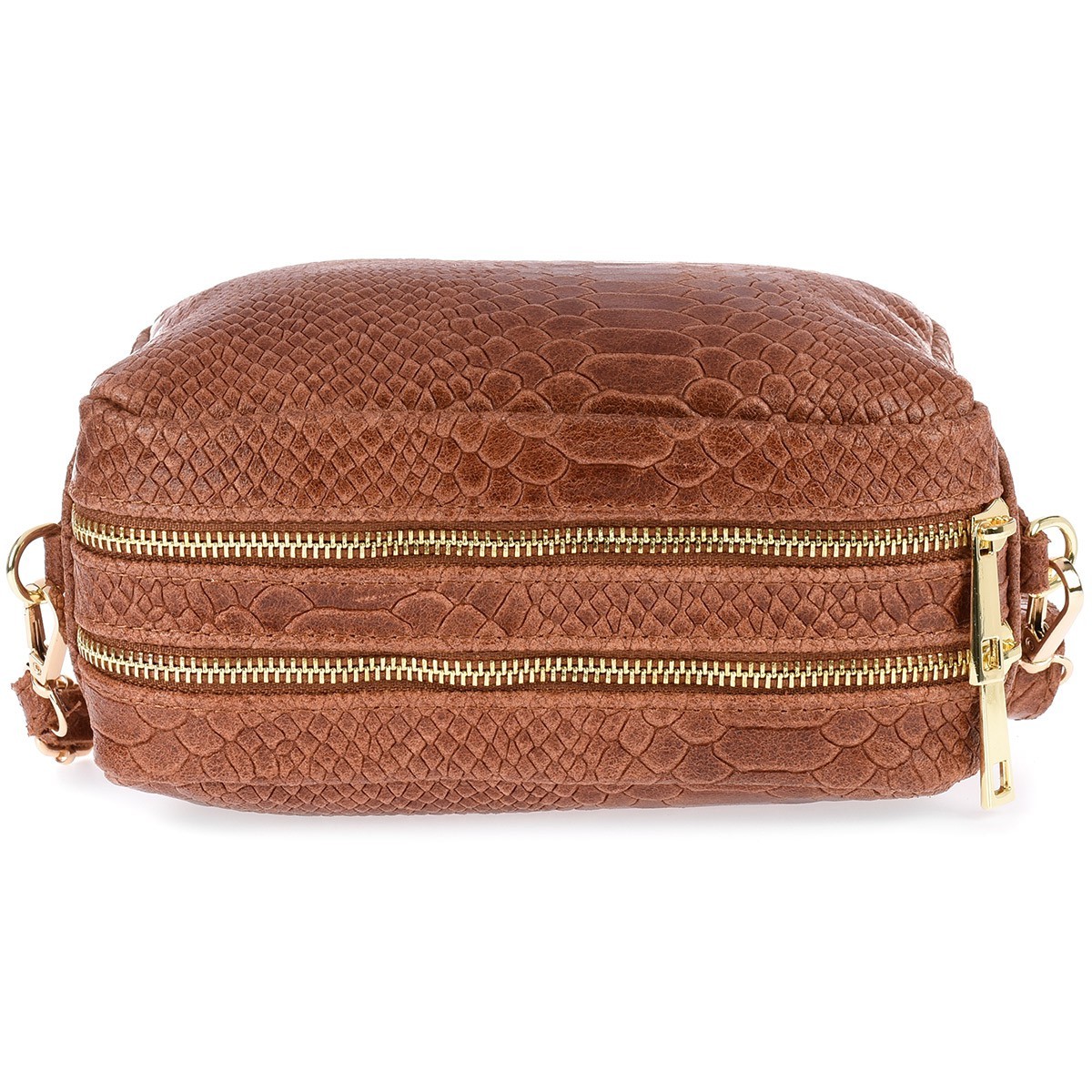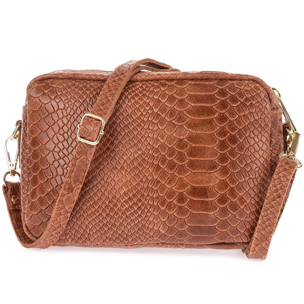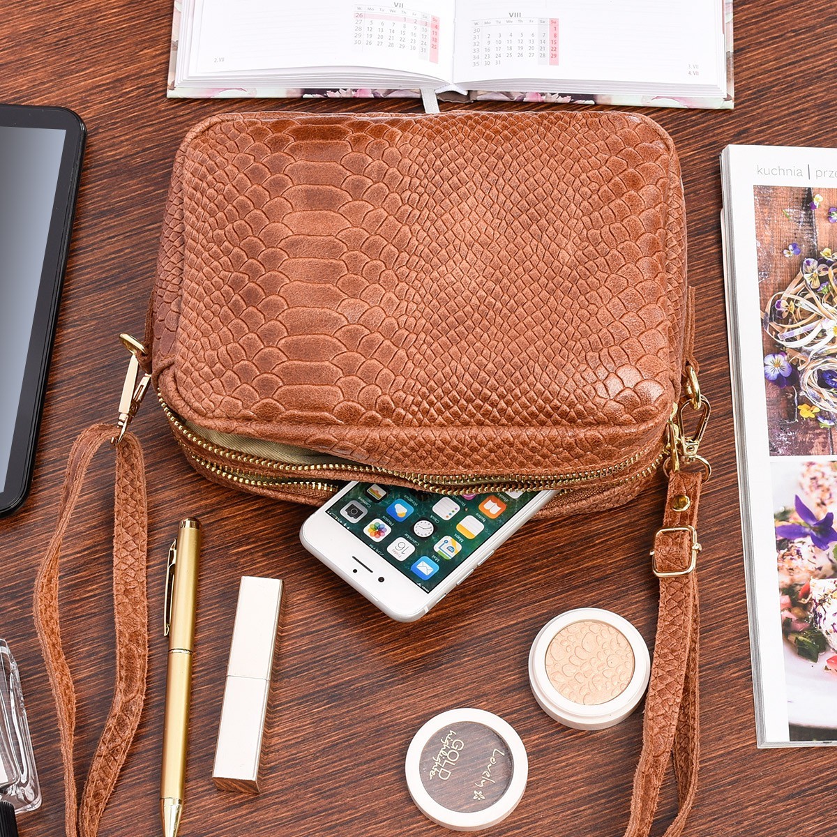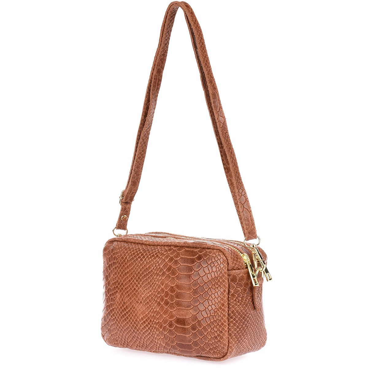Koniakowa skórzana listonoszka damska włoska croco kuferek Beltimore P12