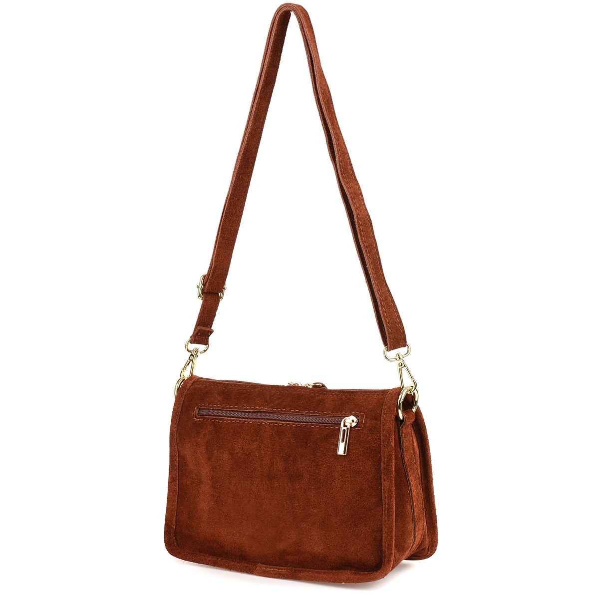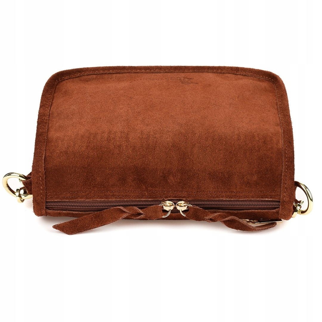 Koniakowa skórzana listonoszka damska włoska zamszowa kuferek Beltimore B64