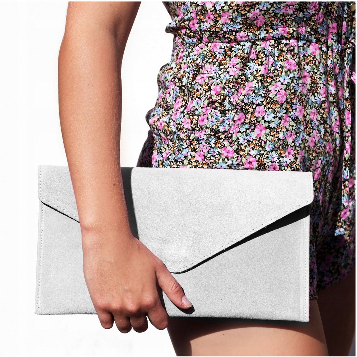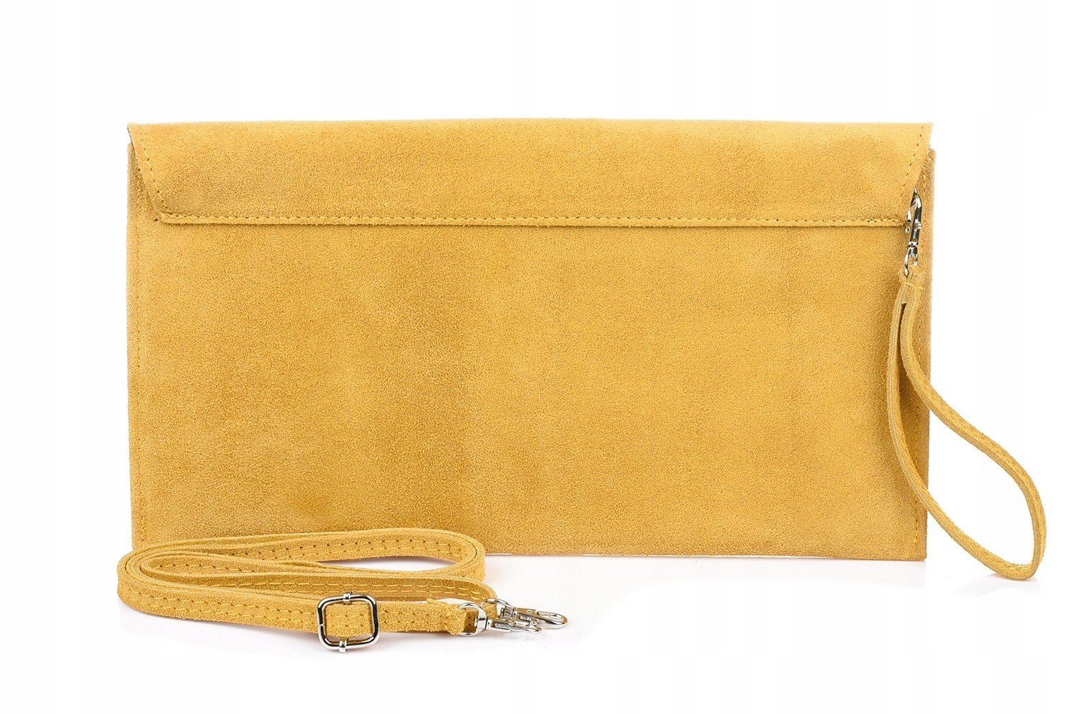 - Dodatkowe informacje: – Torebkę wykonano starannie, z dbałością o szczegóły, we Włoszech, z wysokogatunkowej włoskiej skóry naturalnej zamszowej; – Po odpięciu skórzanych pasków kopertówkę można nosić w ręku;