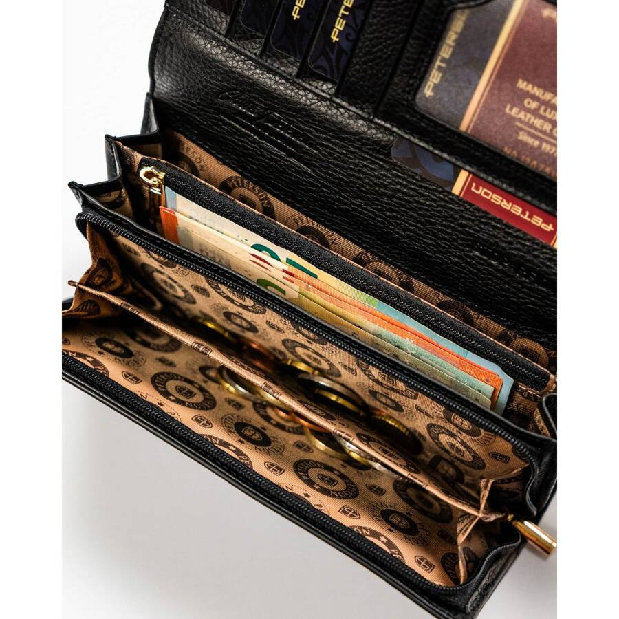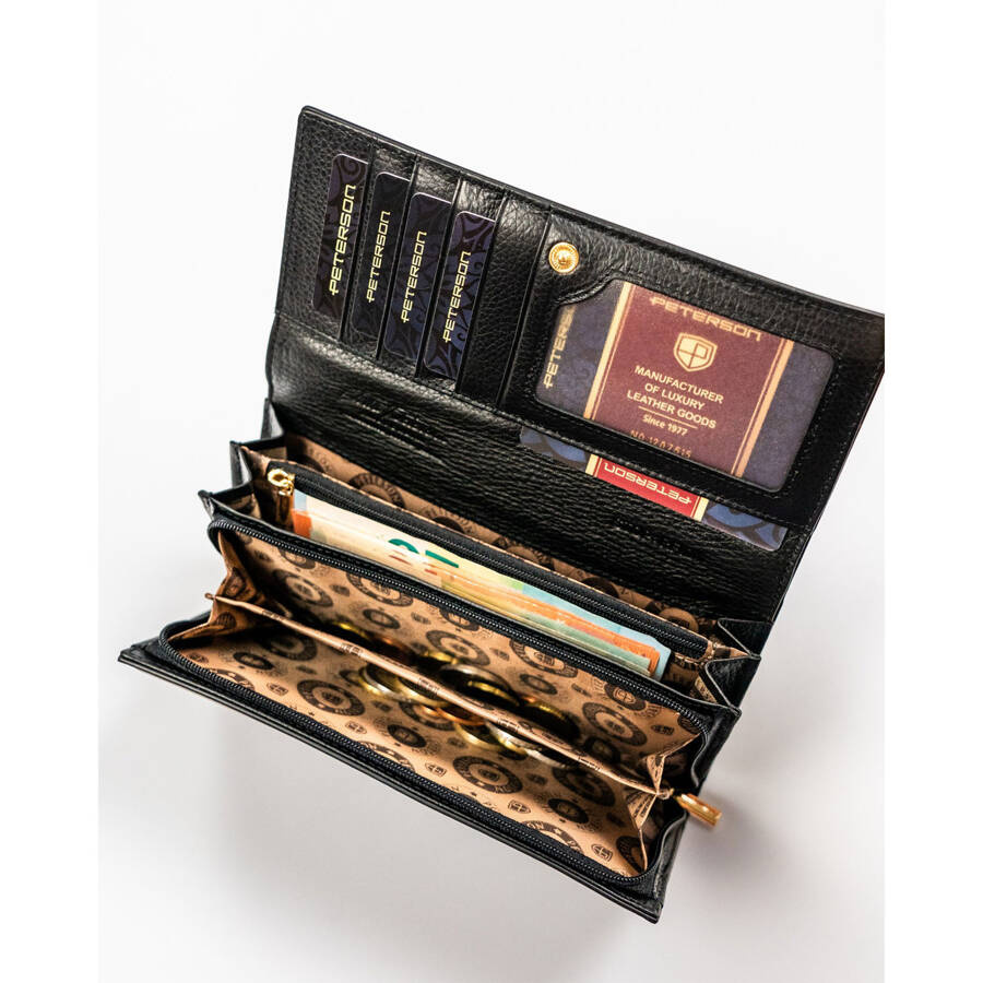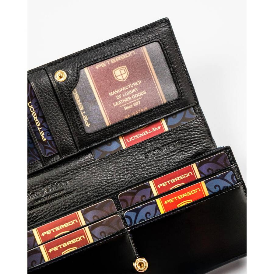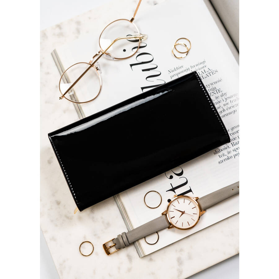 Lakierowany portfel damski ze skóry naturalnej w czarnym kolorze zamykany na zatrzask – Peterson