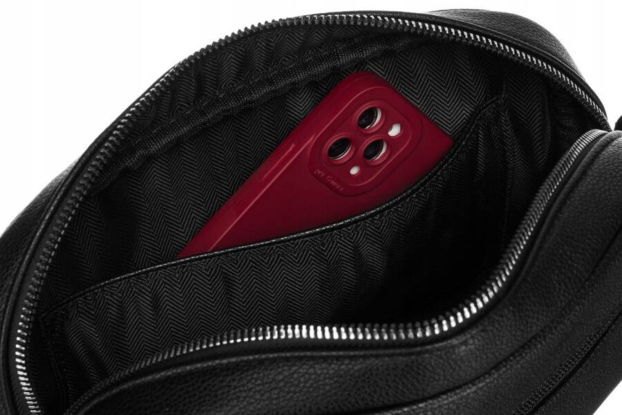 Klasyczna listonoszka o prostokątnych kształcie wyposażona w jedną komorę zapinaną solidnym zamkiem błyskawicznym. Wnętrze wykończone poliestrową podszewką. Torebka wyposażona w 2 kieszenie wewnętrzne (otwartą i na suwak) oraz 3 kieszenie zewnętrzne (dwie na froncie, jedną z tyłu).