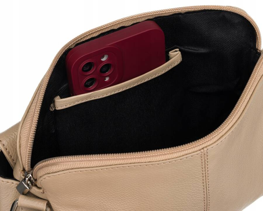Główna komora zamykana na zamek błyskawiczny gwarantuje bezpieczeństwo Twoich rzeczy, a dodatkowe kieszenie wewnętrzne – otwarta i na suwak – umożliwiają organizację wnętrza torebki.
