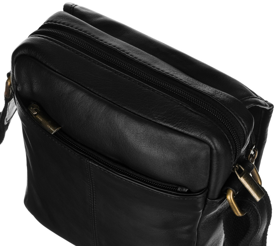 - Klasyczny design | Listonoszka zamykana klapką na magnes oraz zamkiem błyskawicznym. Wszystkie okucia w torebce mają piękny kolor starego złota, co tworzy świetny kontrast dla czarnego koloru skóry