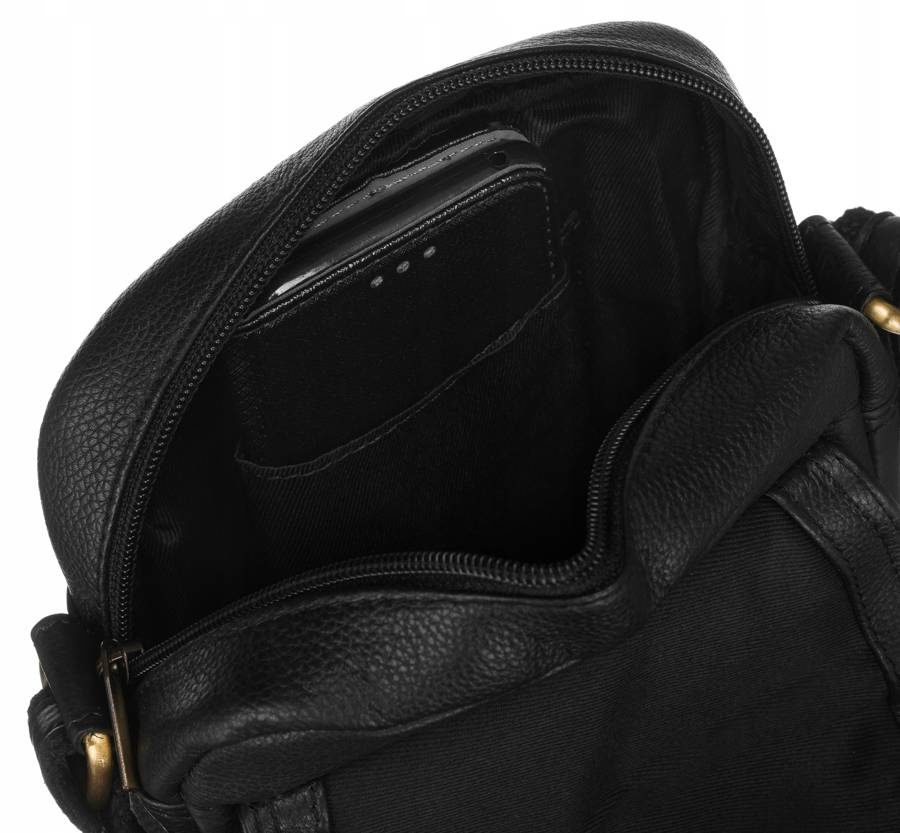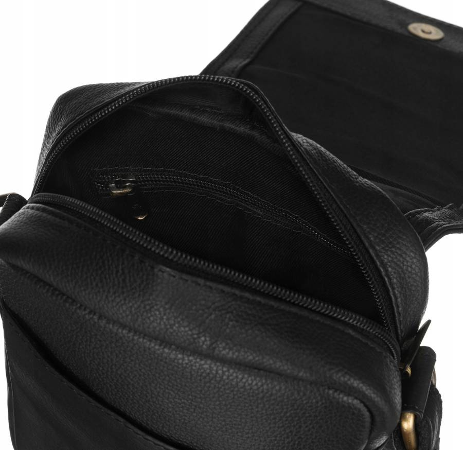 Dodatkowo, listonoszka posiada otwartą kieszonkę na froncie pod klapką. Tył listonoszki zawiera kolejną, zamykaną bezpiecznym suwakiem kieszeń. Całość na materiałowej podszewce, która chronić będzie skórę przed uszkodzeniami podczas wkładania i wyjmowania z niej przedmiotów.