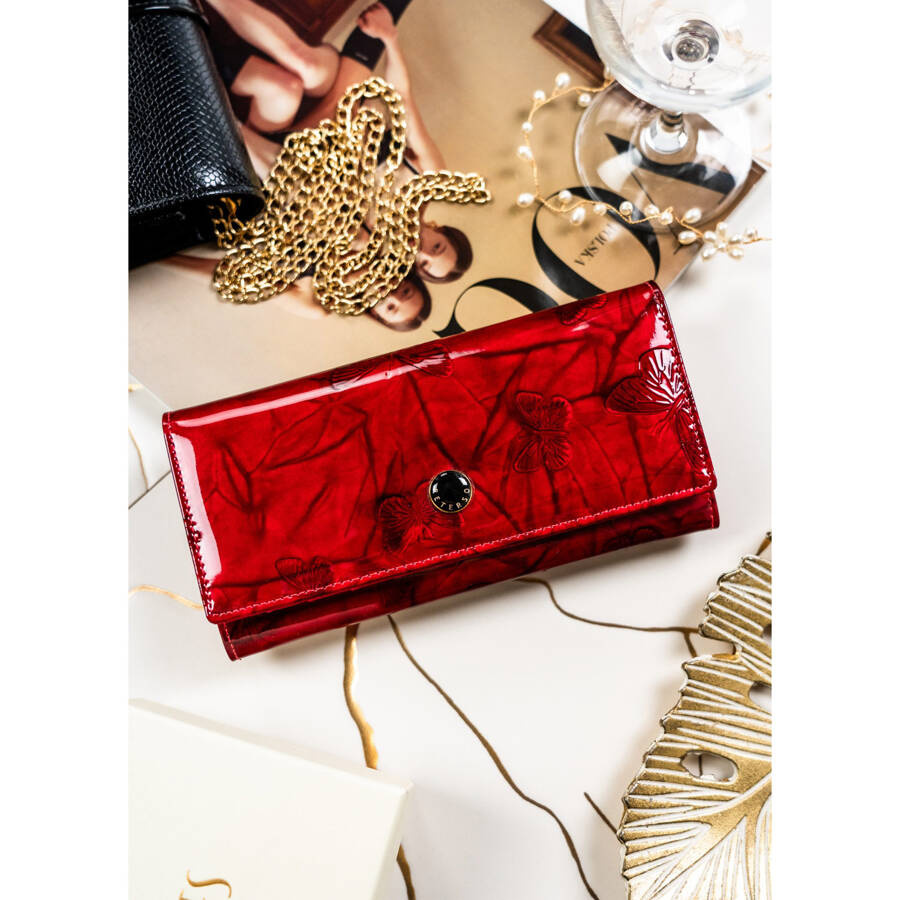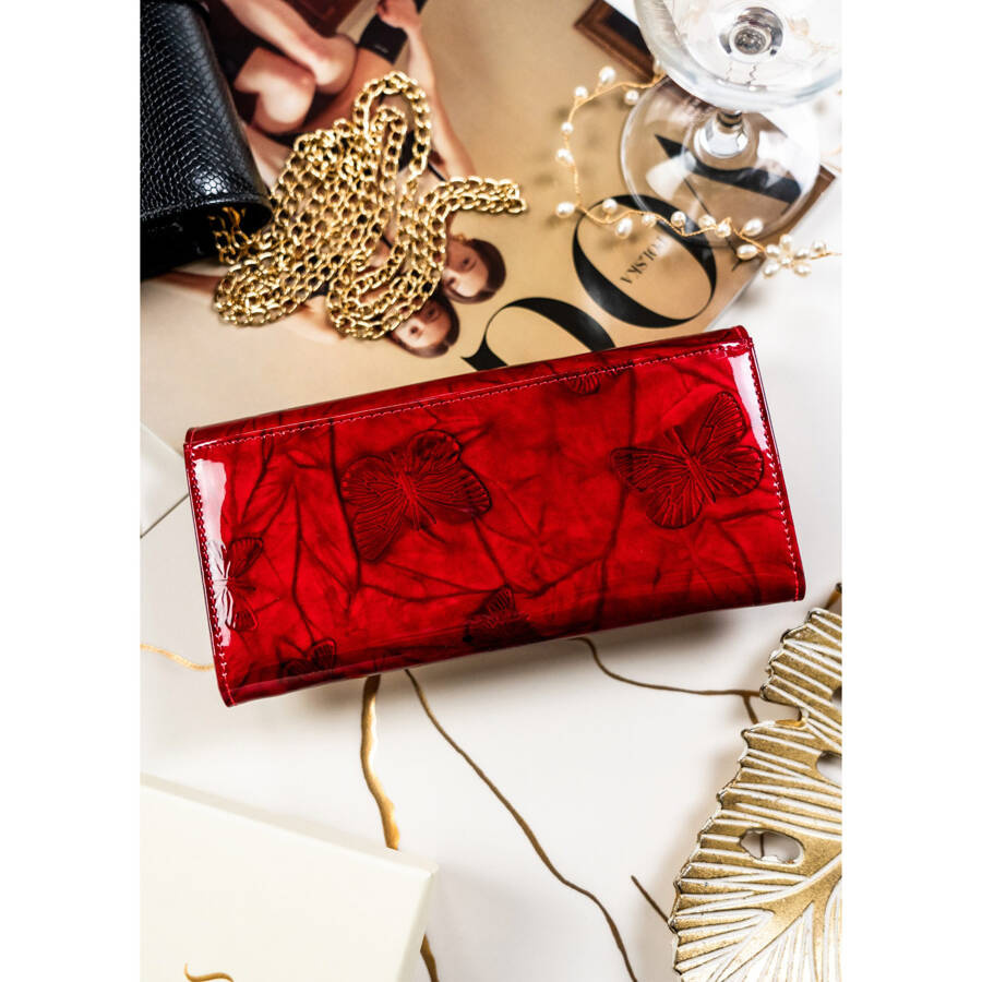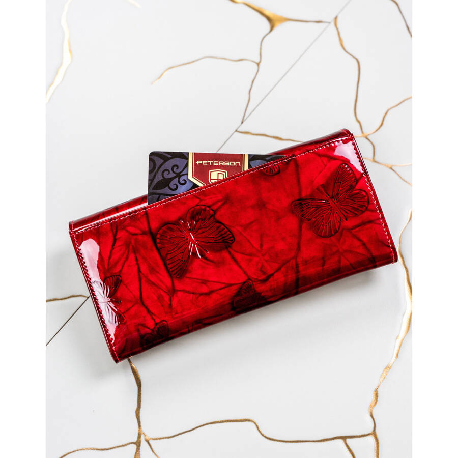 Luksusowy portfel damski czerwony lakierowany w motyle – Peterson