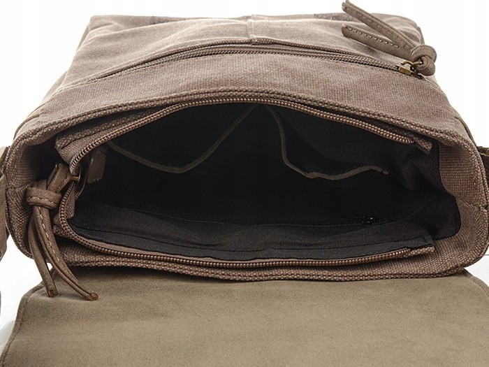 - Pod klapą torba posiada również zasuwaną komorę, w której swobodnie zmieści się format A5Wewnątrz komory znajdują się trzy niewielkie boczne kieszonki np. na klucze, telefon lub inne drobne akcesoria; jedna z nich- największa- jest zasuwana , a dwie mniejsze- są otwarte