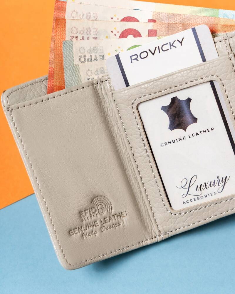 - Bezpieczeństwo | Portfel wyposażony w system STOP RFID, który zabezpiecza kartę w portfelu przed kradzieżą środków z konta.