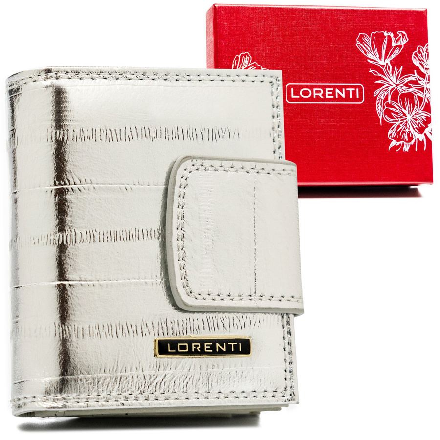 Mały, elegancki skórzany portfel damski na zatrzask i bigiel - LorentiMały, elegancki skórzany portfel damski na zatrzask i bigiel – Lorenti