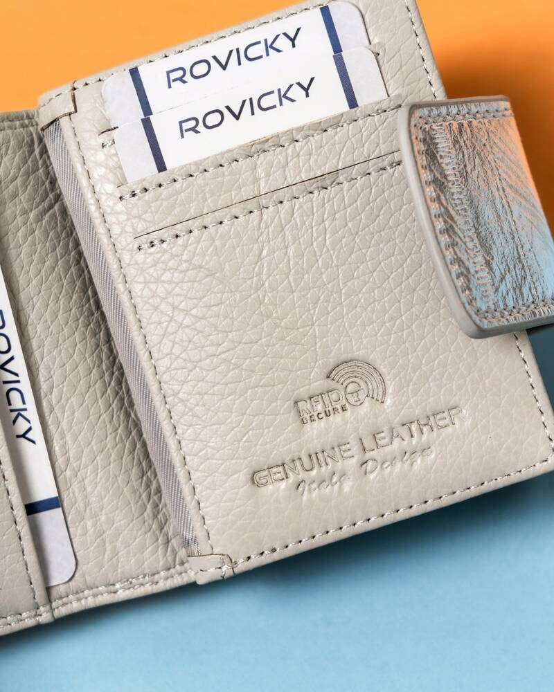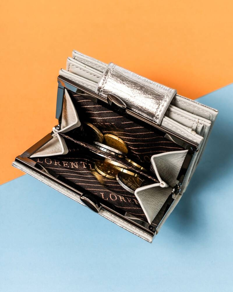 Mały, elegancki skórzany portfel damski na zatrzask i bigiel – Lorenti
