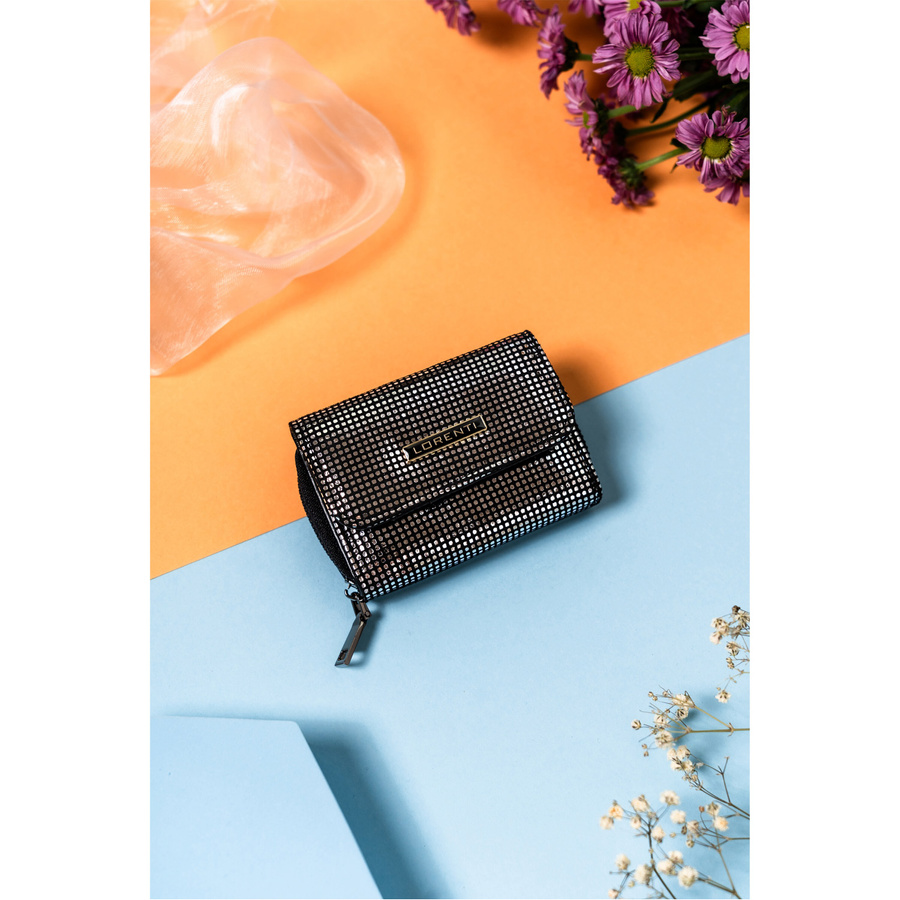 Mały, kompaktowy portfel damski z błyszczącej skóry naturalnej - LorentiMały, kompaktowy portfel damski z błyszczącej skóry naturalnej – Lorenti