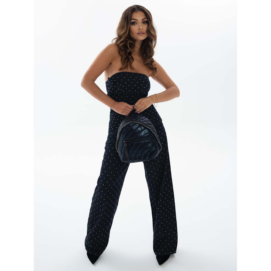 - Pikowany, na przodzie ma kieszeń zdobioną bardzo ciekawym, dużym zamkiem w srebrnym kolorze. Wszystkie okucia plecaczka mają ten kolor;