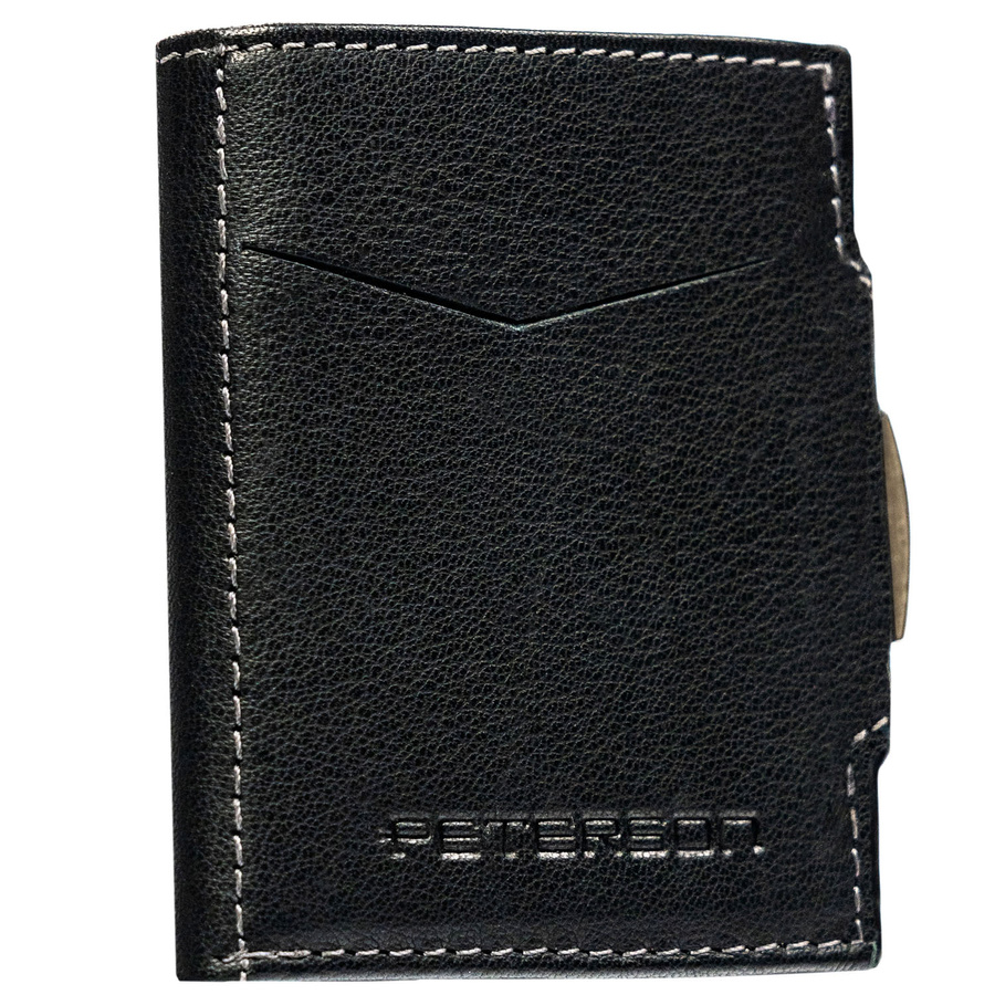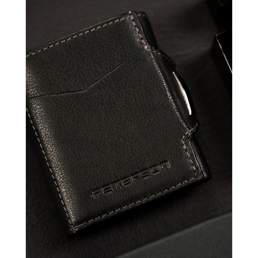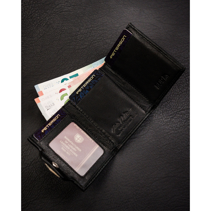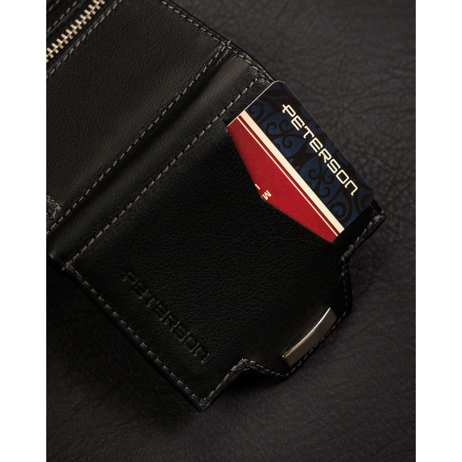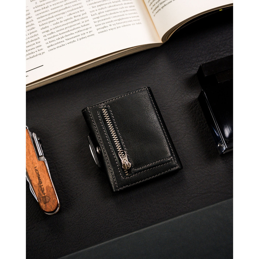 Mały, pionowy portfel męski w czarnym kolorze zamykany na zatrzask – Peterson