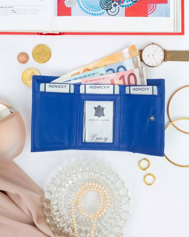 Mały portfel damski na zatrzask ze skóry naturalnej – Rovicky