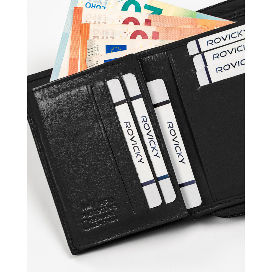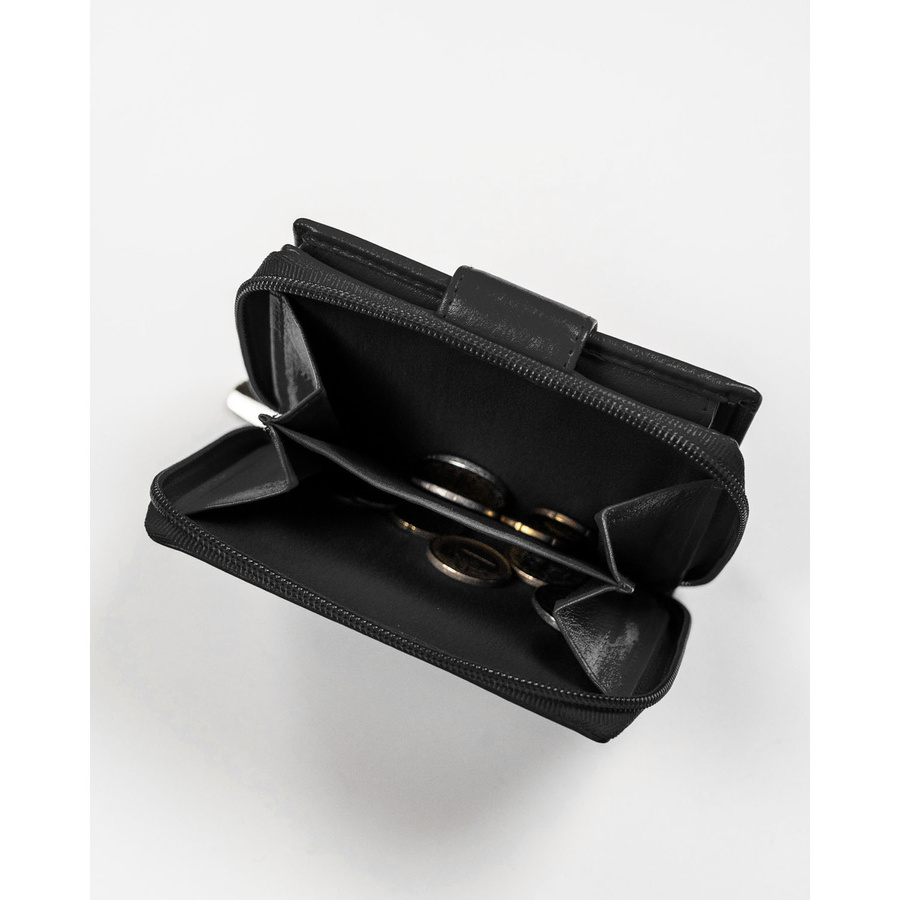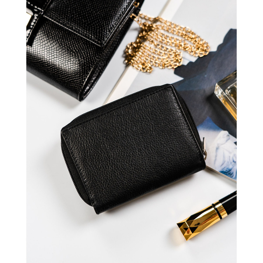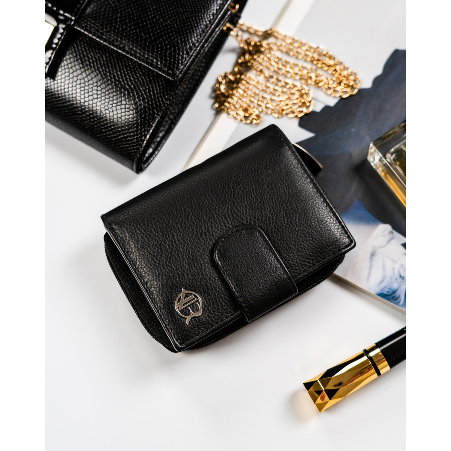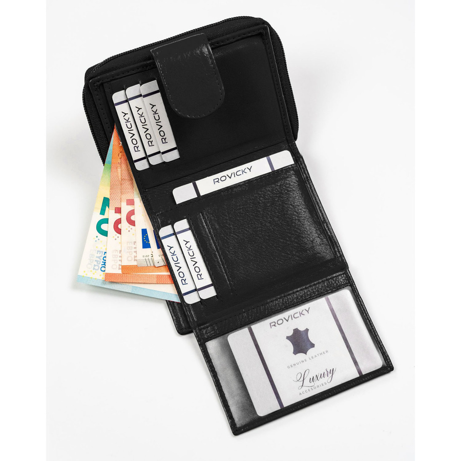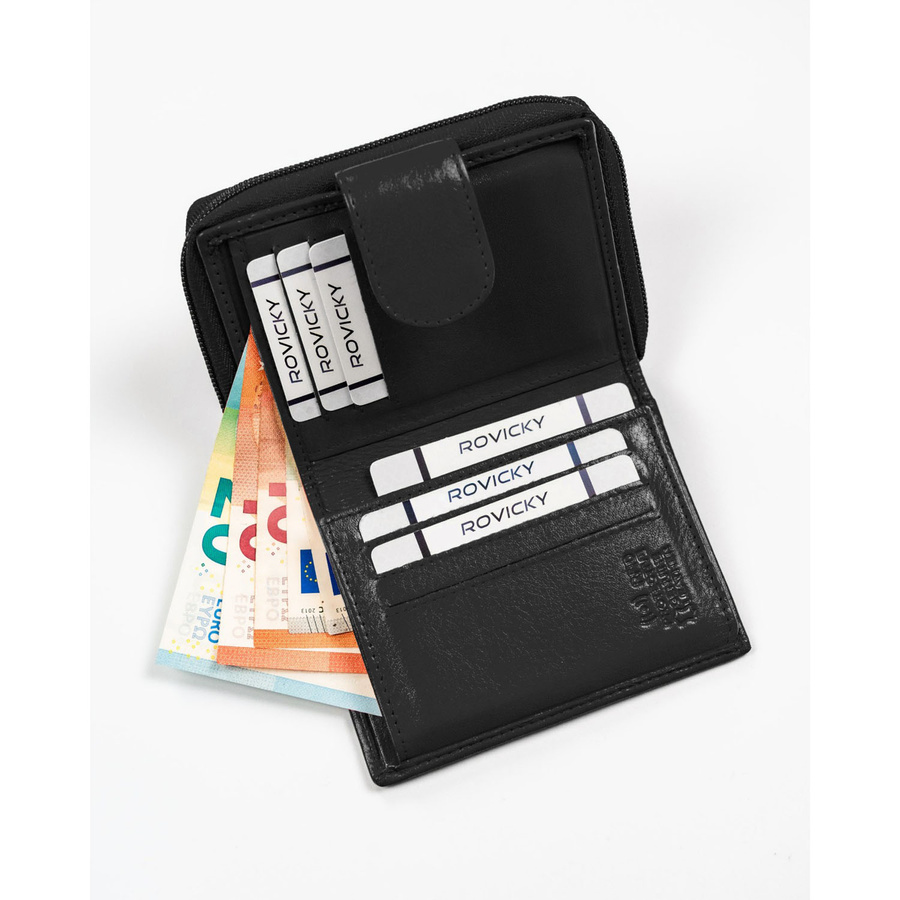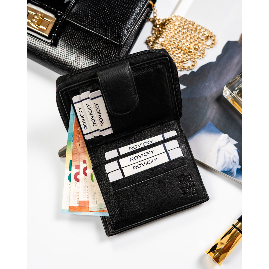 Mały portfel damski wykonany ze skóry naturalnej w czarnym kolorze – Rovicky