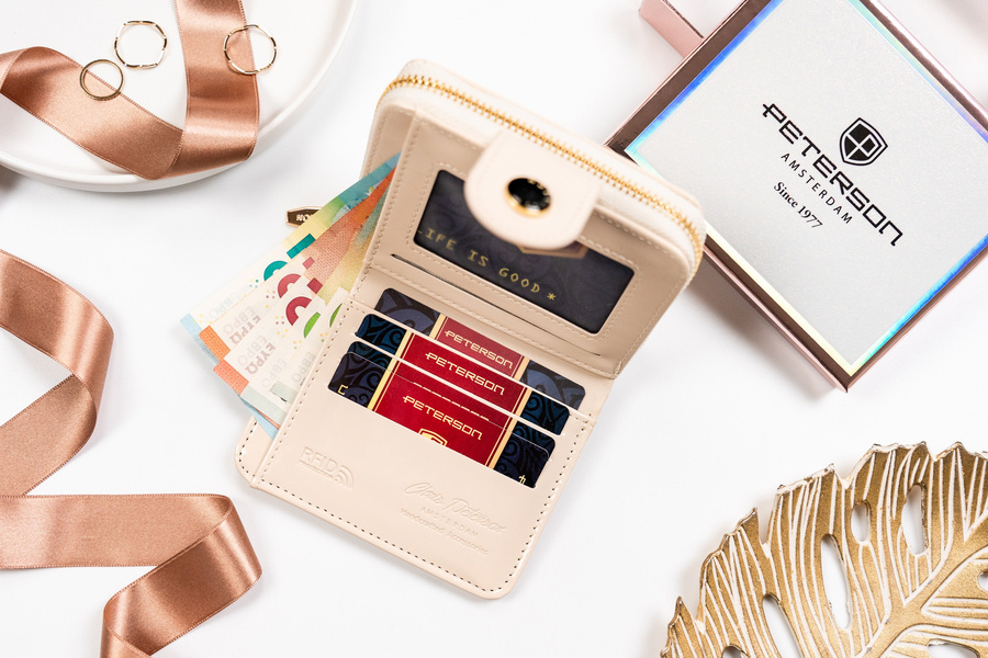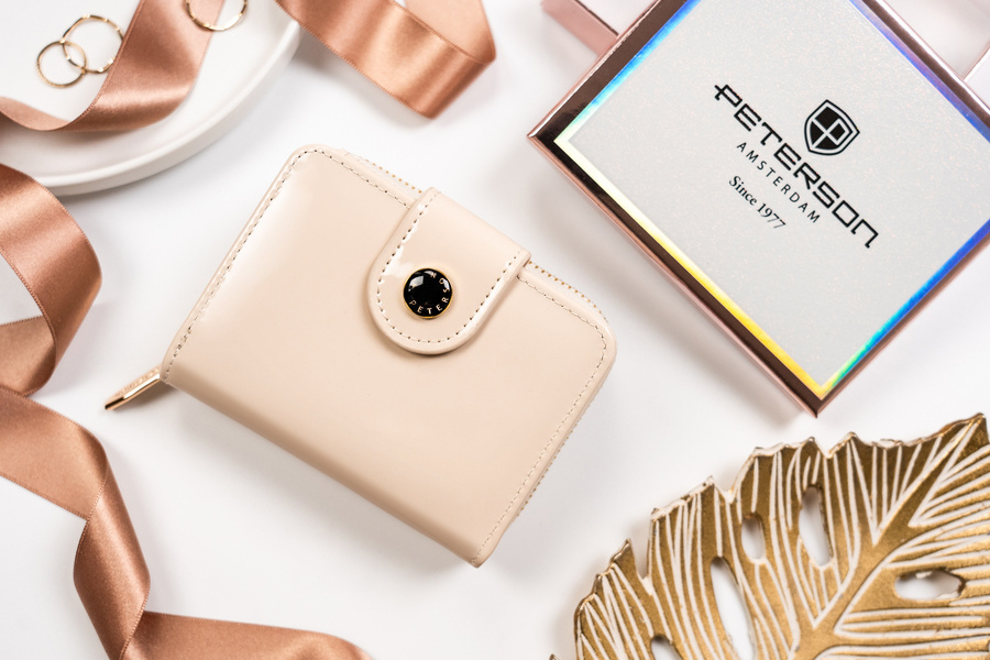 Mały portfel damski ze skóry ekologicznej na zatrzask i suwak - PetersonMały portfel damski ze skóry ekologicznej na zatrzask i suwak – Peterson