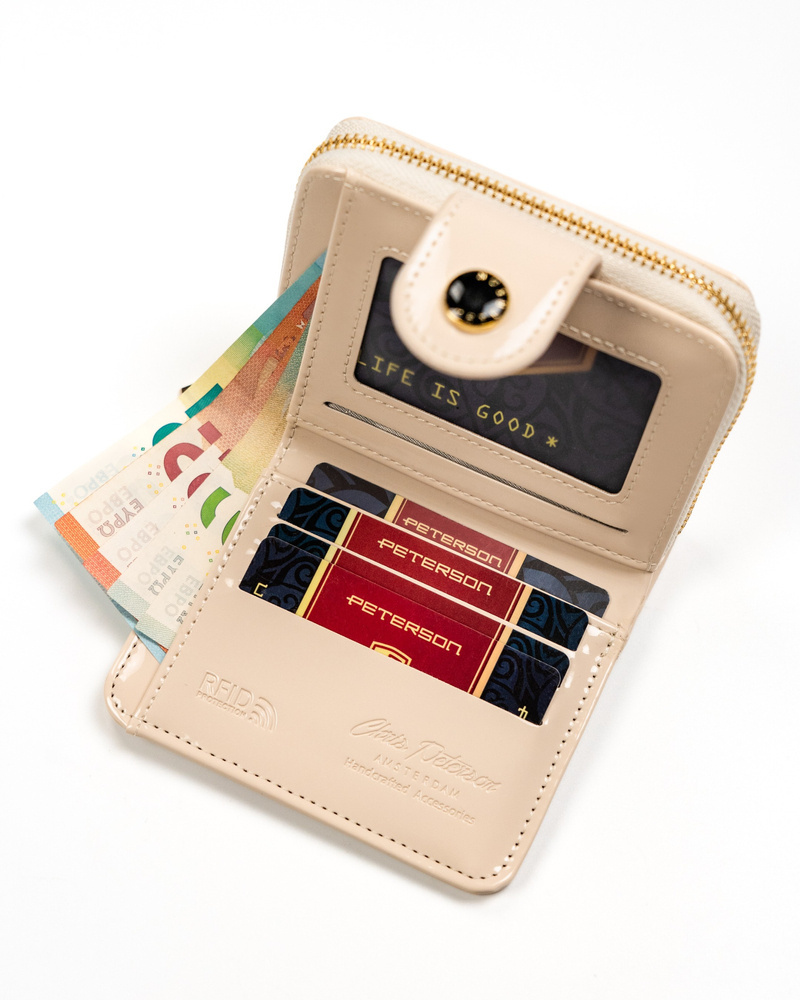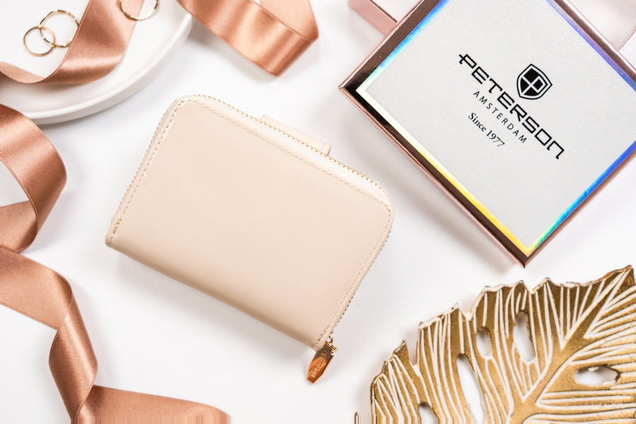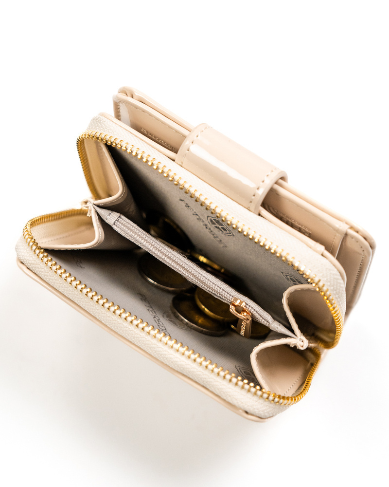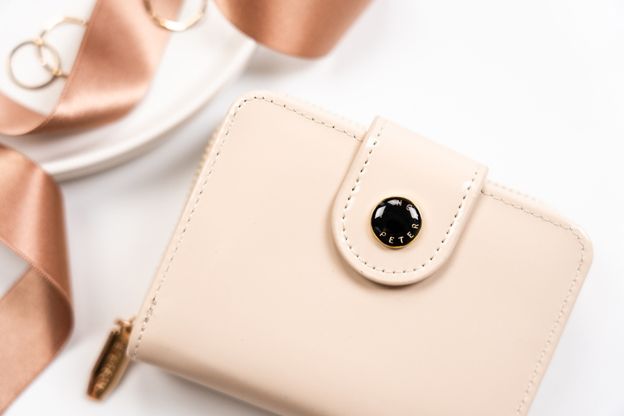 Mały portfel damski ze skóry ekologicznej na zatrzask i suwak – Peterson