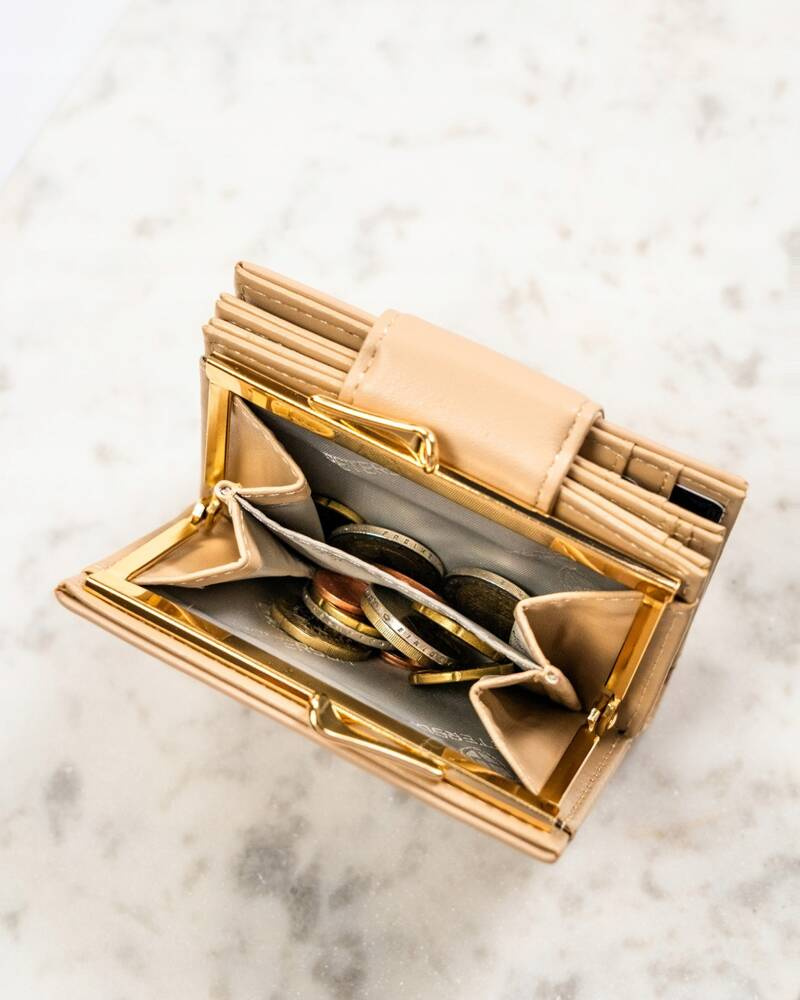 - 1 podwójną kieszeń na bilon, zabezpieczoną solidnym biglem, który gwarantuje bezpieczeństwo przechowywanych monet.