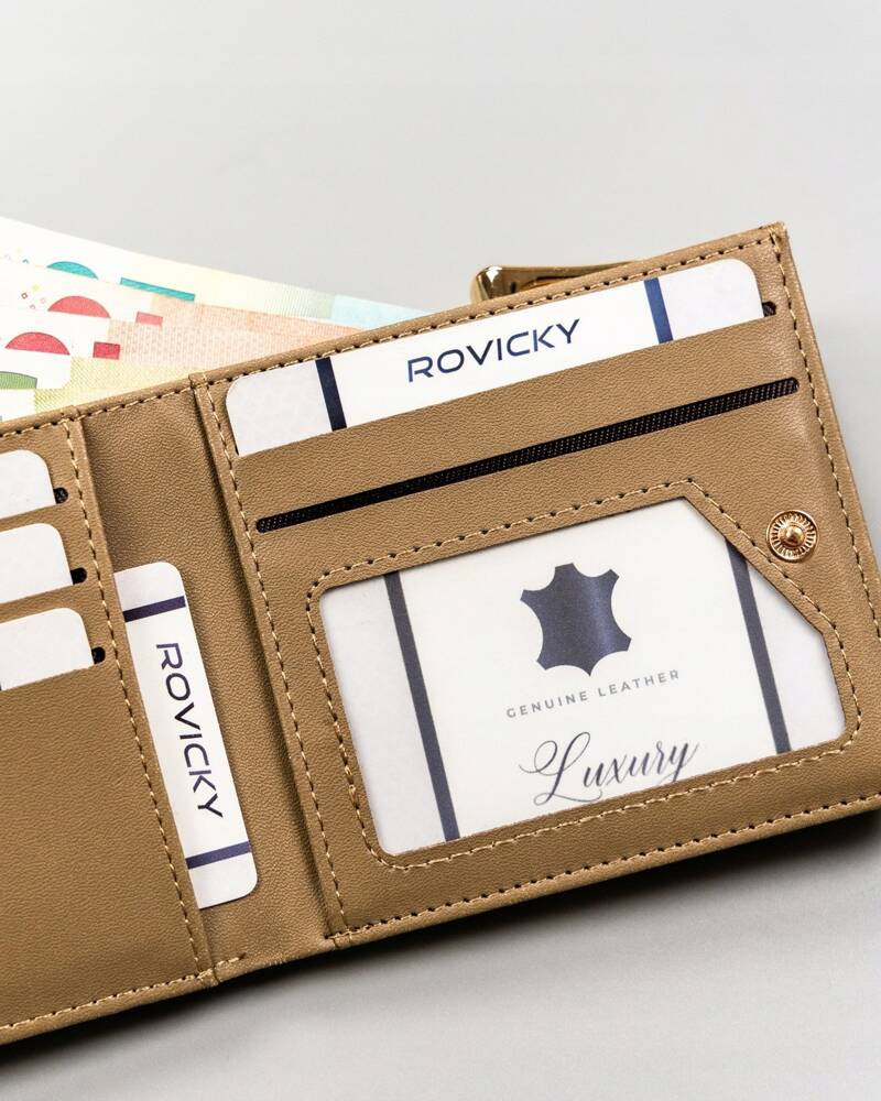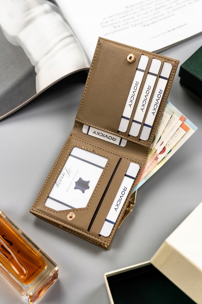 Środek portfela został zabezpieczony przez wytrzymałą podszewkę. Pozwala to uniknąć otarć na skórze, podczas wkładania i wyjmowania kart i dokumentów.