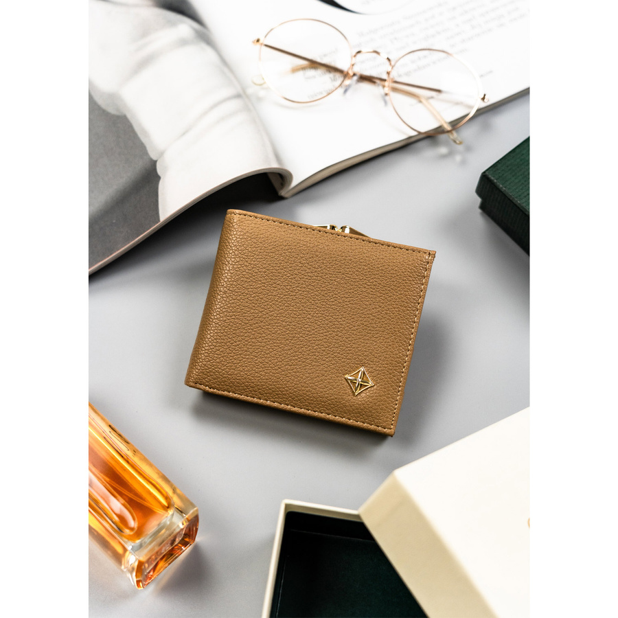 Mały portfel damski ze skóry ekologicznej zamykany zatrzaskiem i biglem – Milano Design