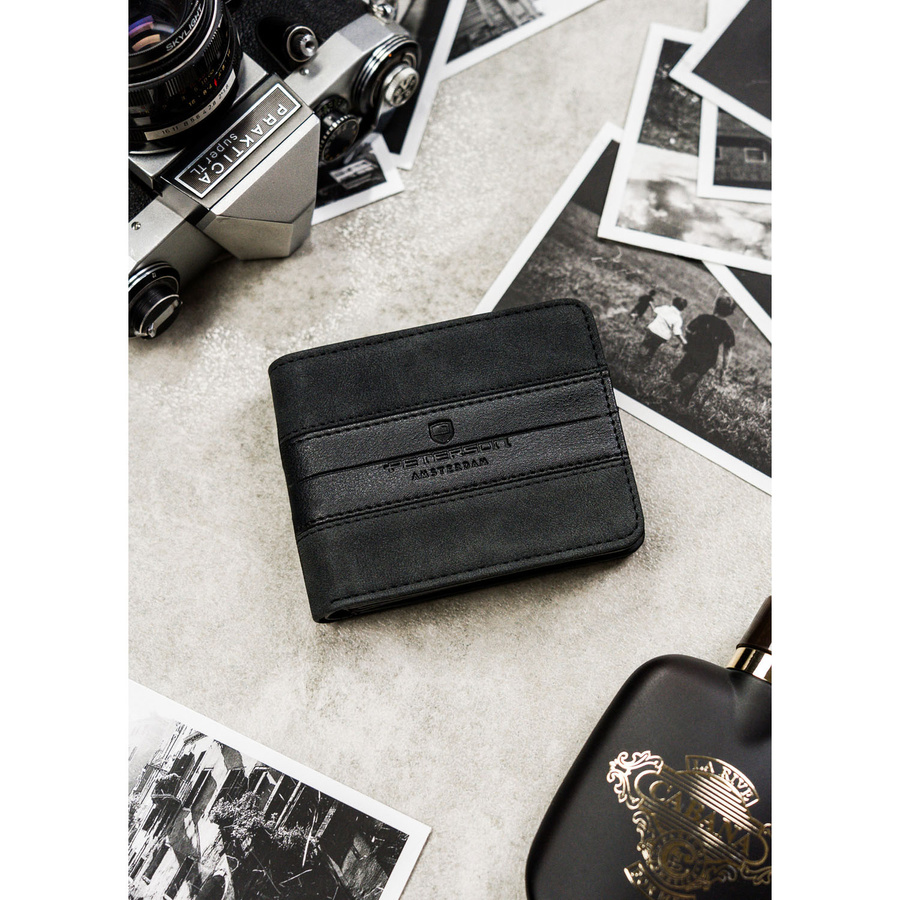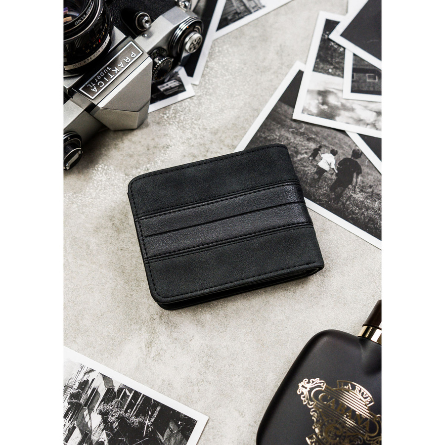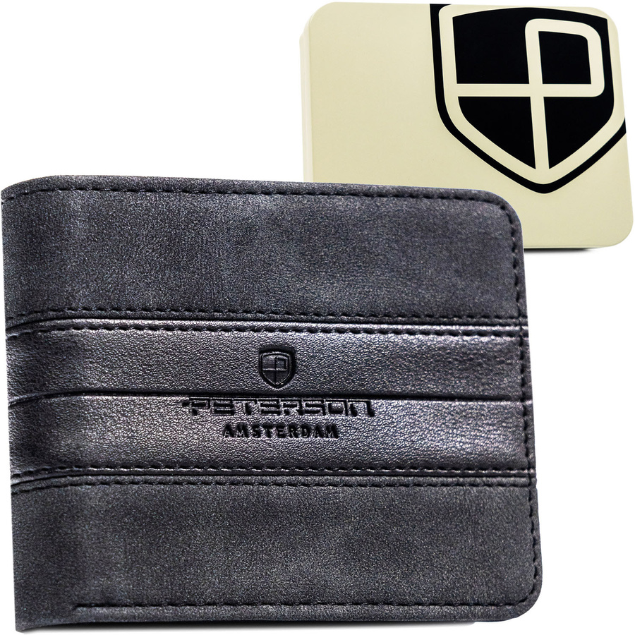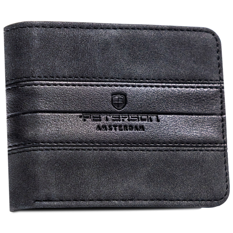 Mały portfel męski w czarnym kolorze wykonany ze skóry ekologicznej – Peterson