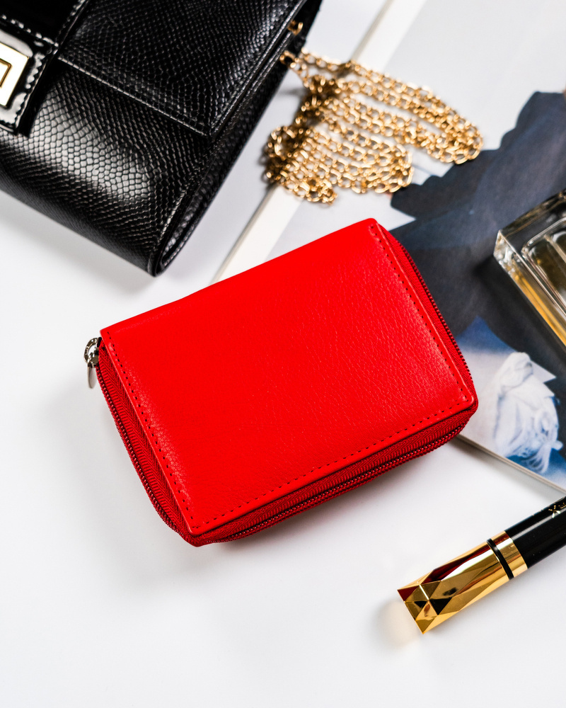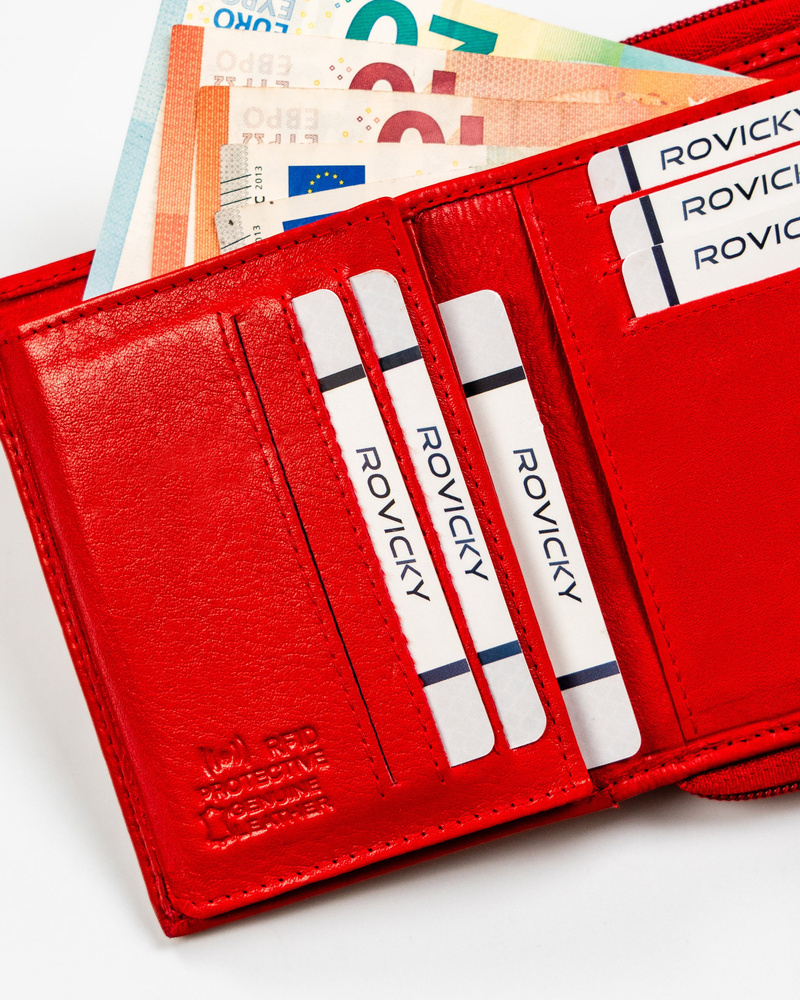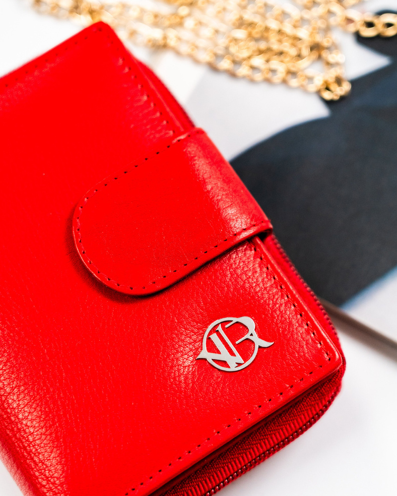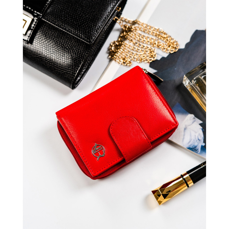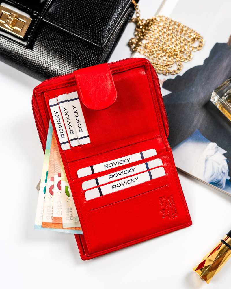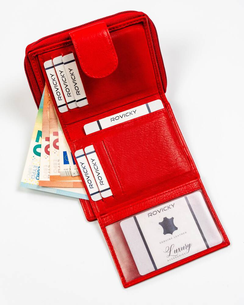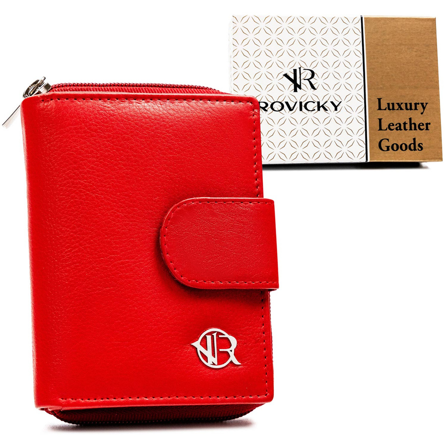 Mały portfel skórzany na zatrzask w czerwonym kolorze – Rovicky