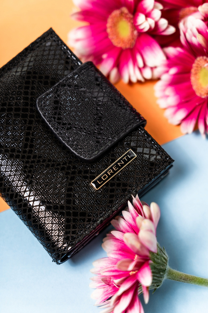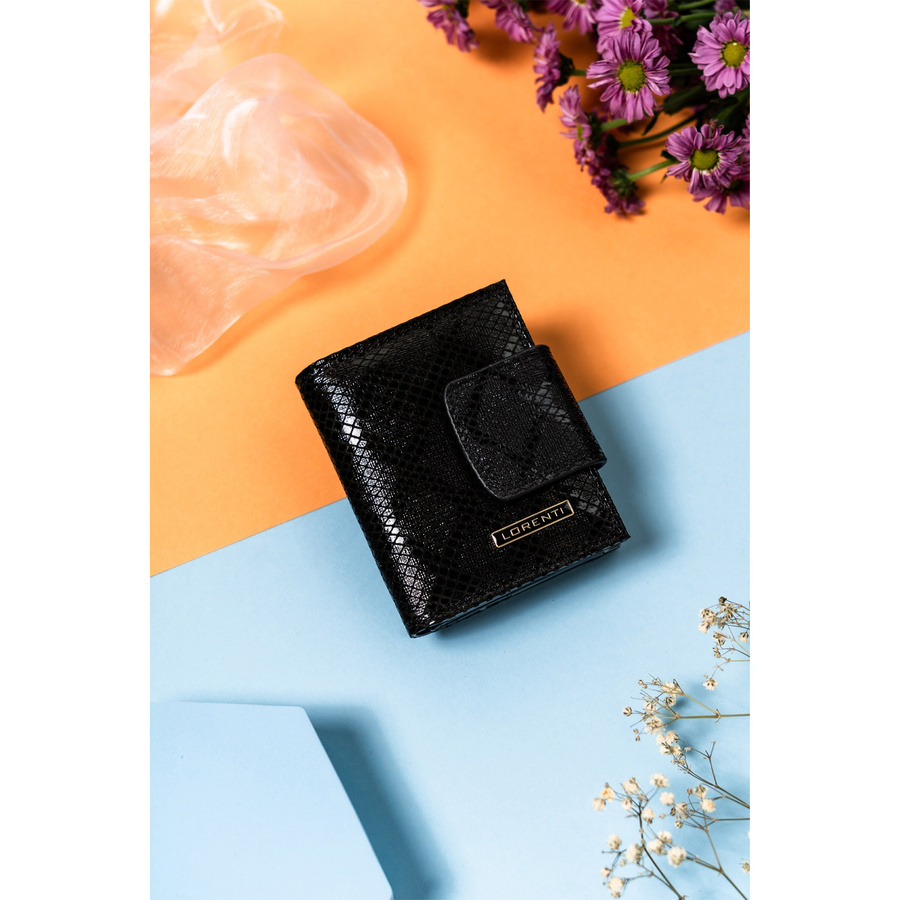 Mały, skórzany portfel damski na zatrzask i bigiel – Lorenti