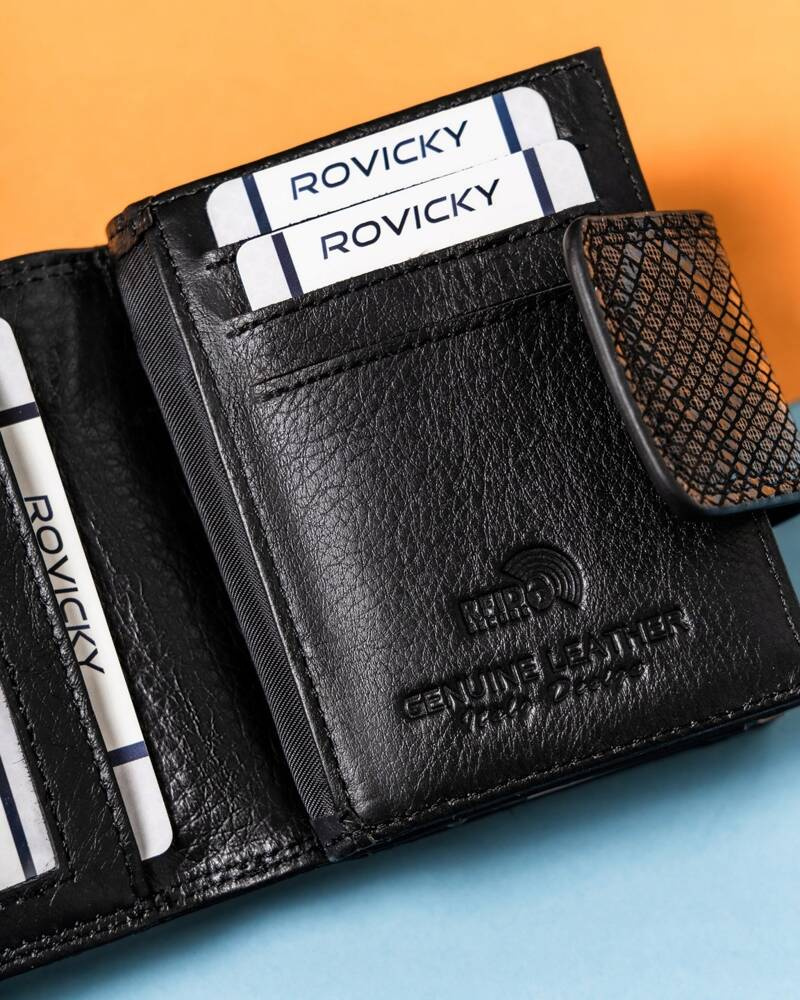 - Zabezpieczenie kart i dokumentów | Portfel wyposażony w system STOP RFID, który zabezpiecza kartę w portfelu przed kradzieżą środków z konta;
