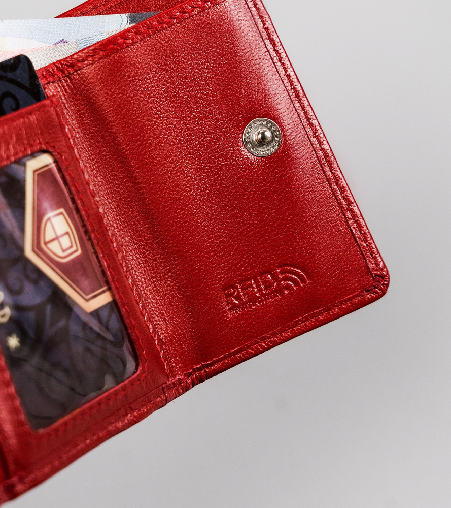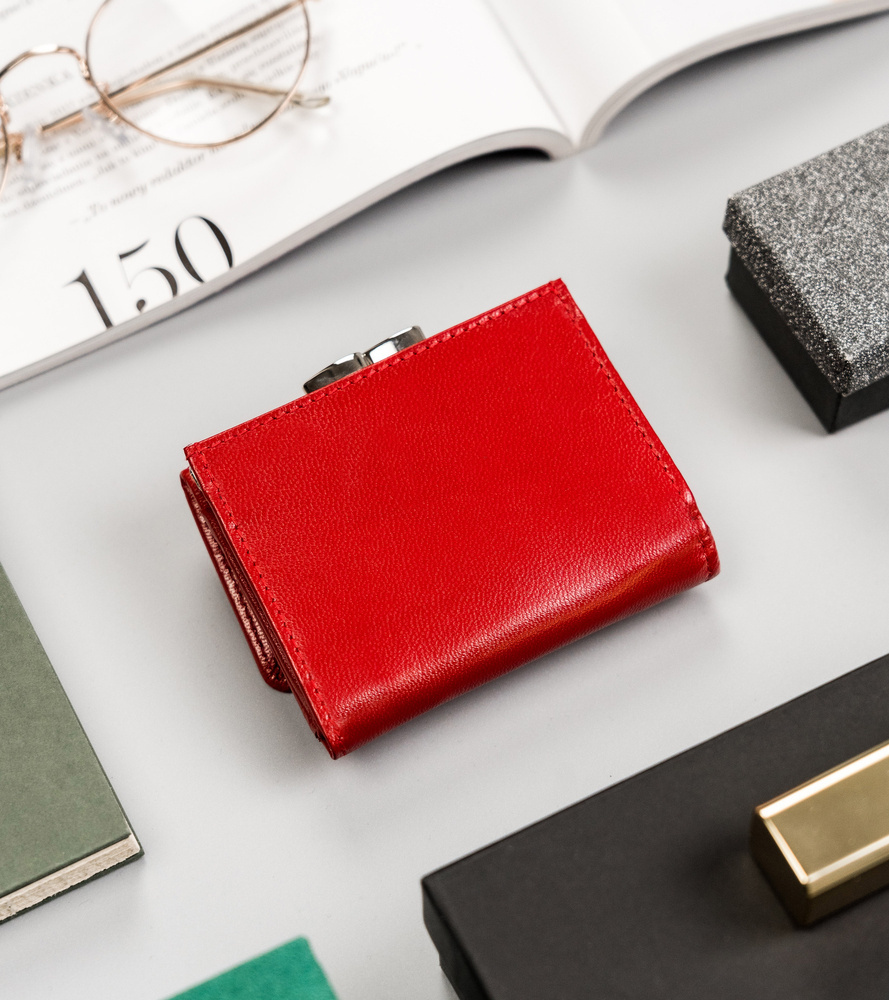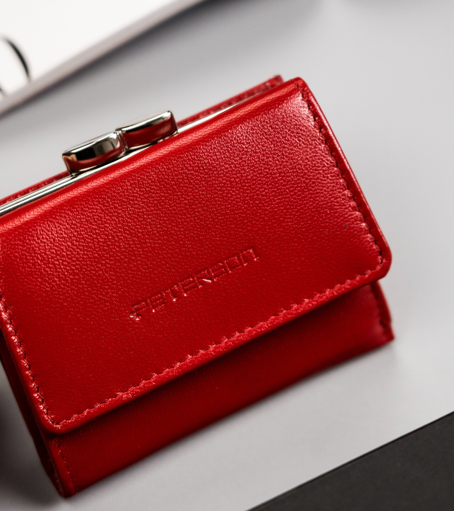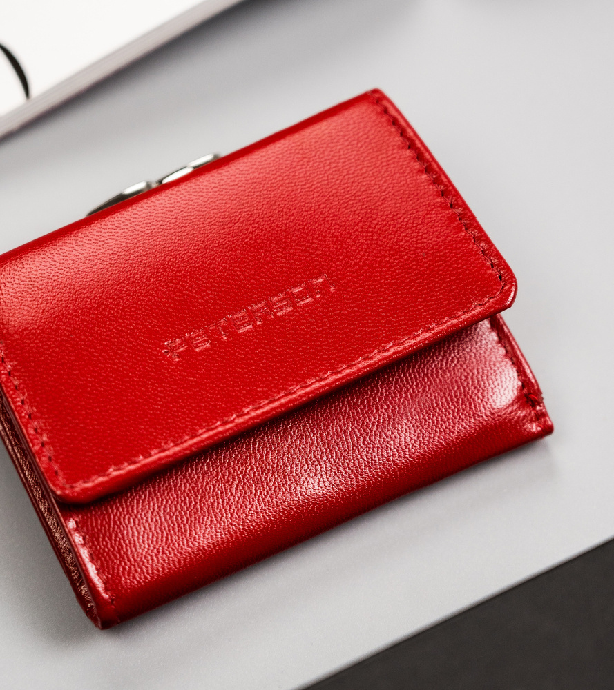Mały, skórzany portfel damski na zatrzask i bigiel – Peterson