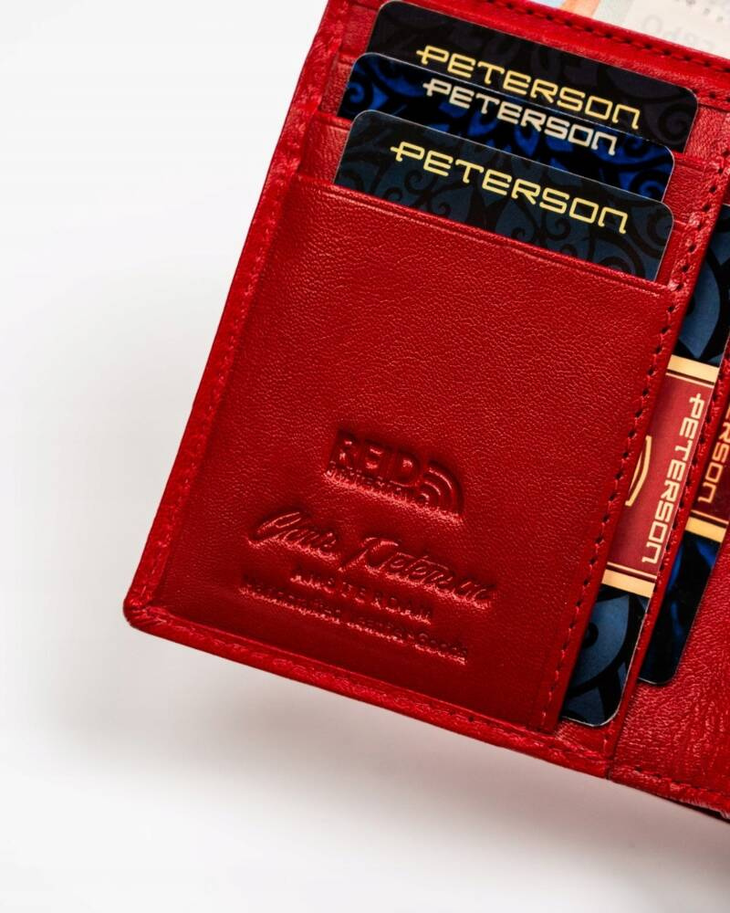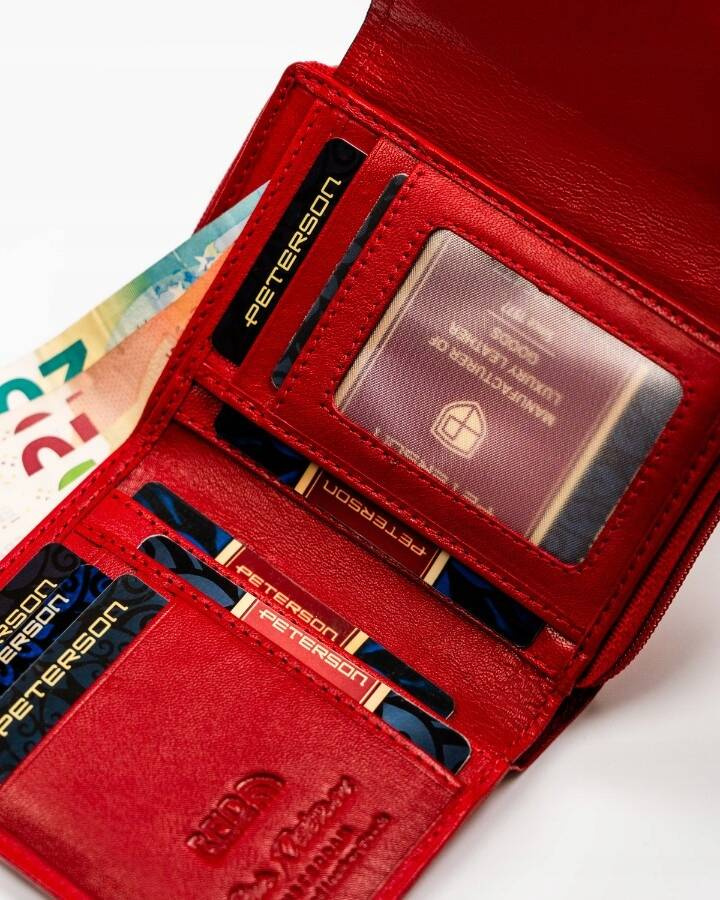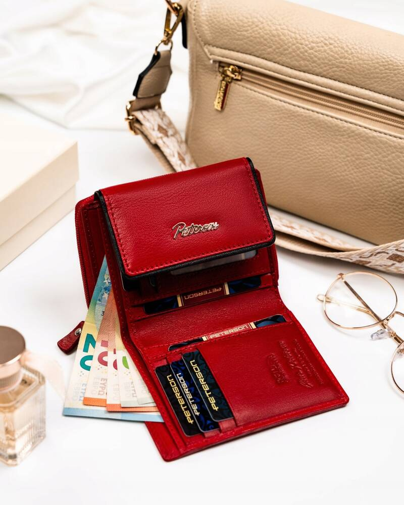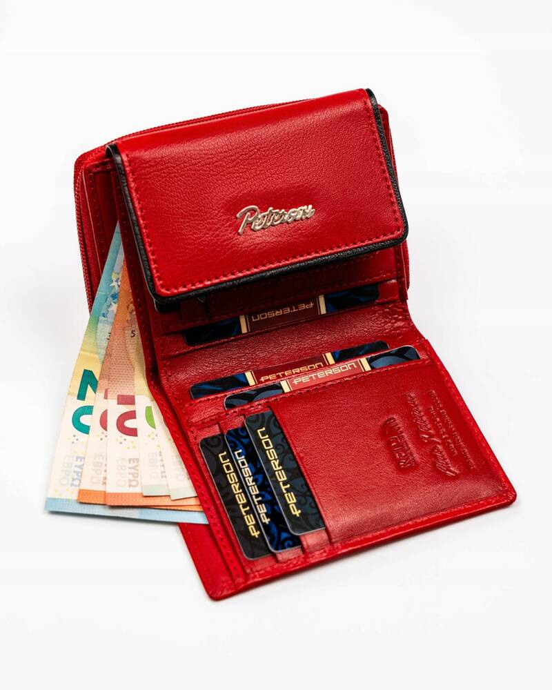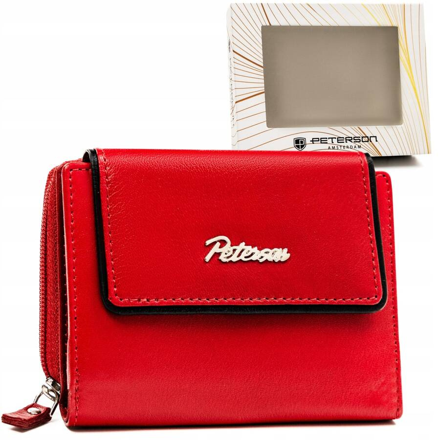 Mały, skórzany portfel damski na zatrzask i suwak – Peterson