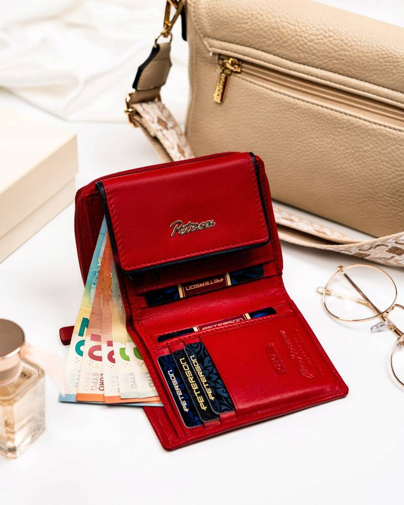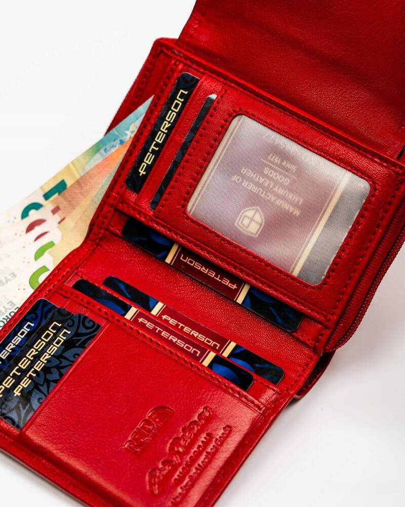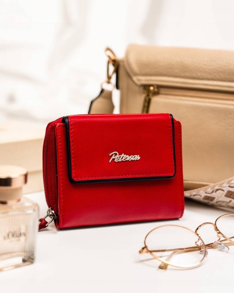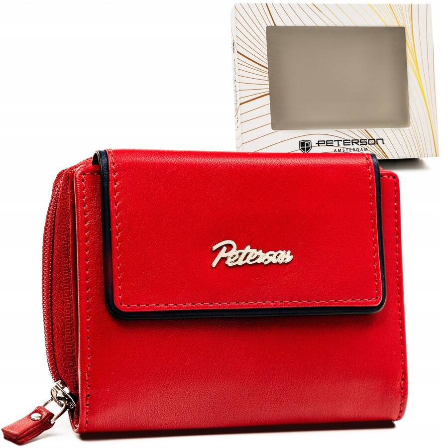 Mały, skórzany portfel damski na zatrzask i suwak – Peterson