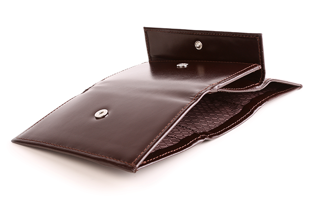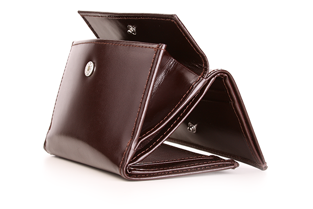 - Kieszeń na bilon umieszczona z tyłu portfela, zamykana.