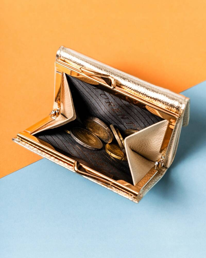 - Materiał i wykonanie | Wykonany z wysokogatunkowej skóry naturalnej o błyszczącej fakturze w złotym kolorze;