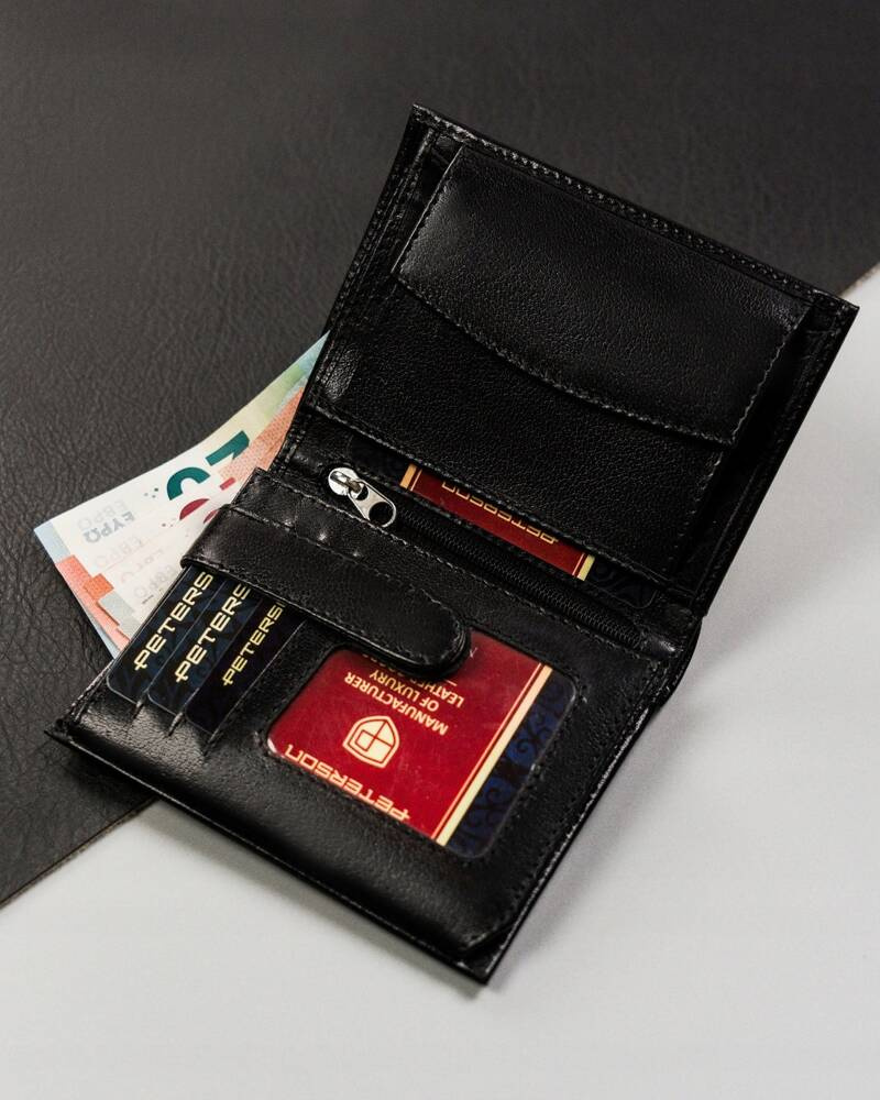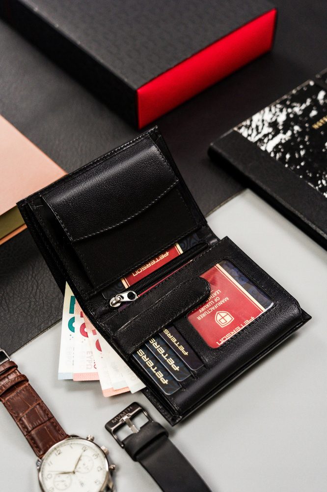 Mały, skórzany portfel męski bez zapięcia – Peterson