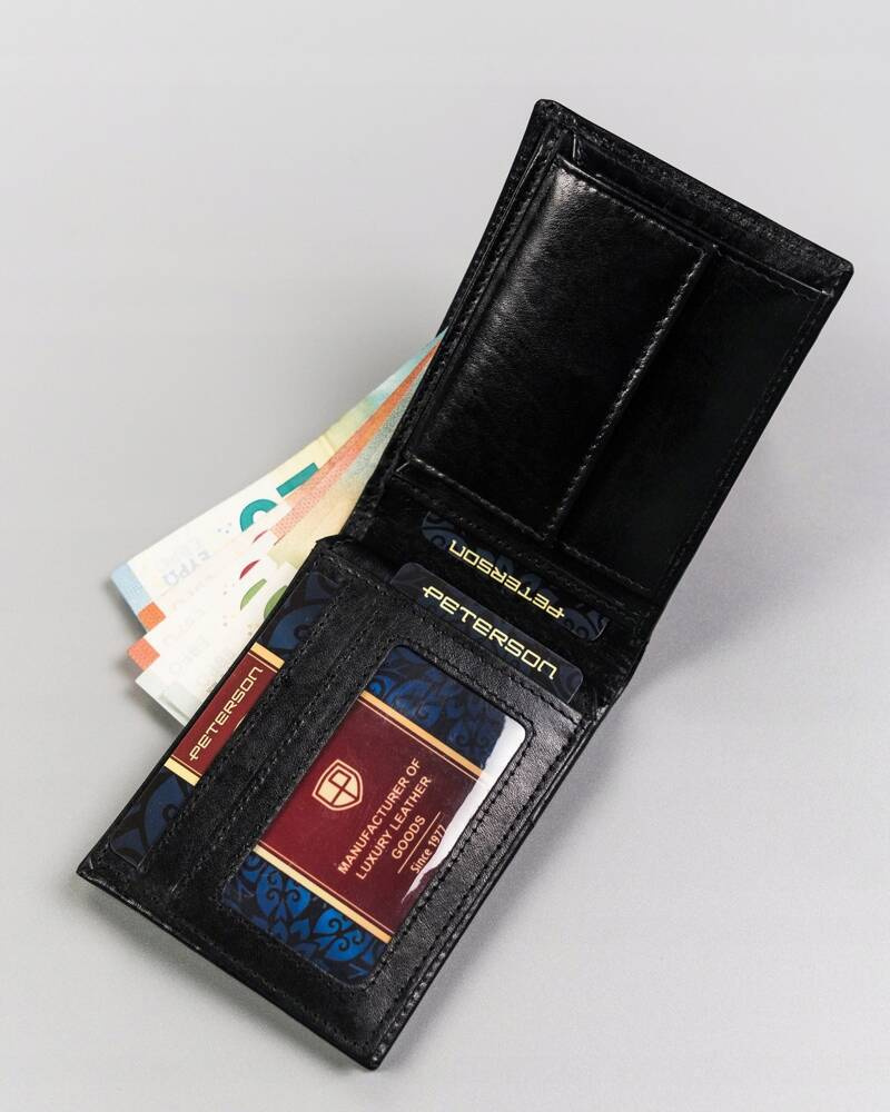 Mały, skórzany portfel bez zapięcia zewnętrznego – Peterson