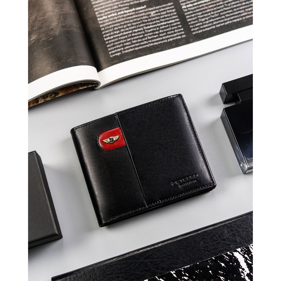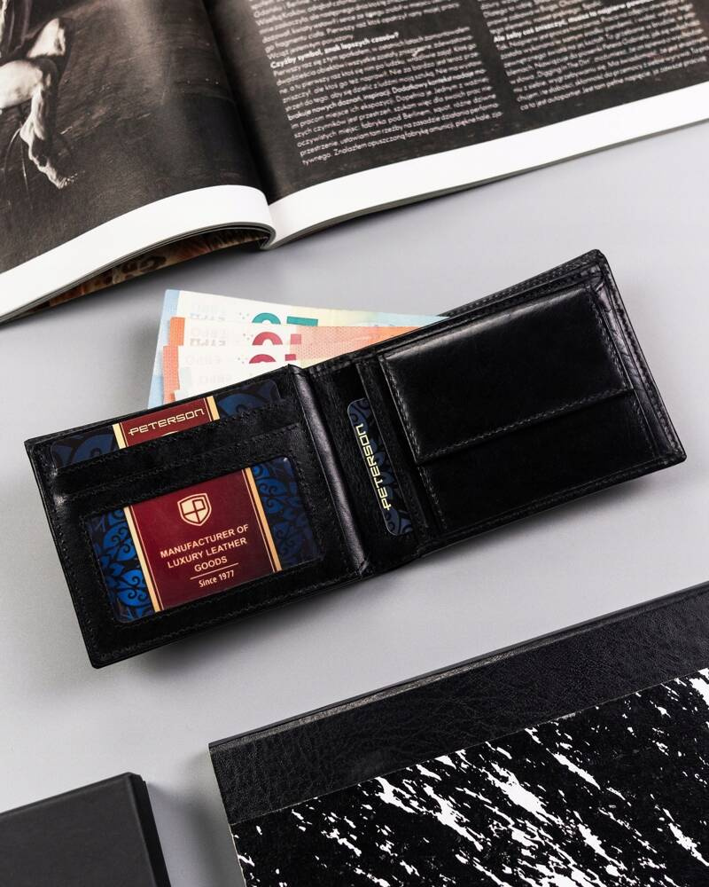 Mały, skórzany portfel męski bez zapięcia zewnętrznego – Peterson