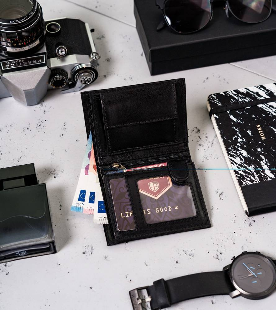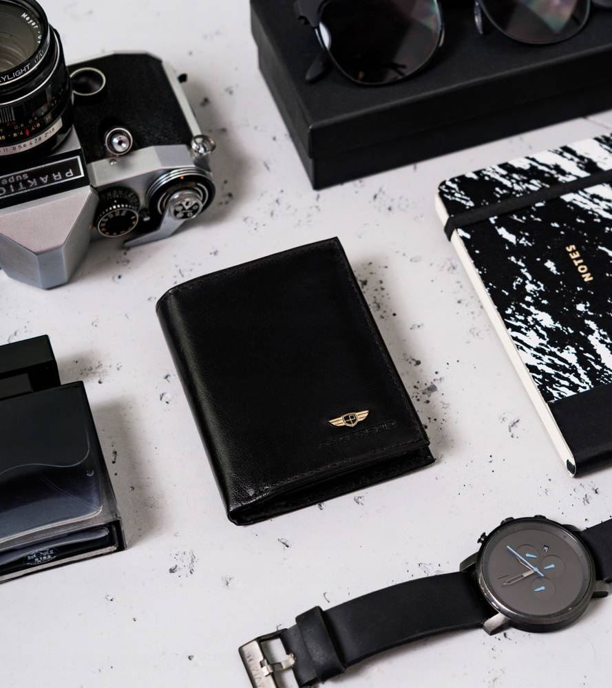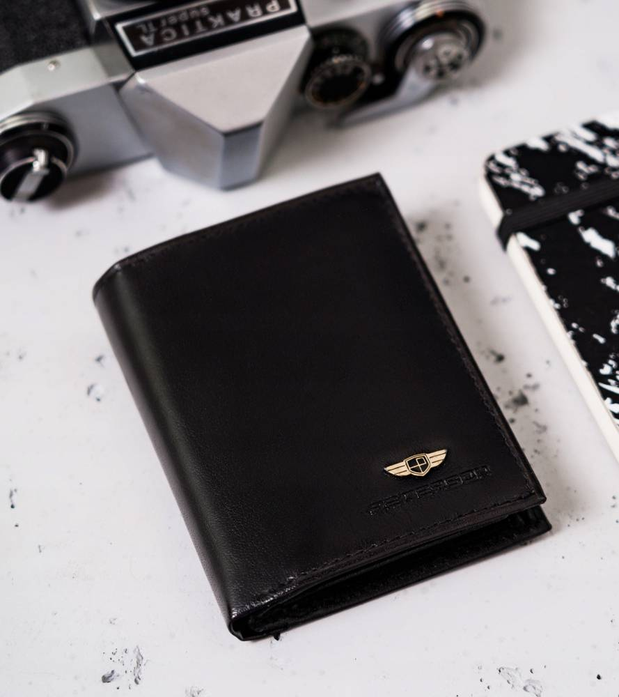 - Portfel o ponadczasowym designie | Skórzana klasyka! Portfel męski w orientacji pionowej w czarnym, zawsze modnym kolorze