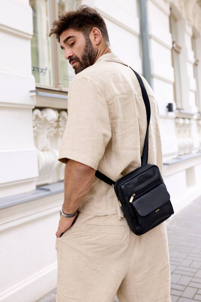 Tył listonoszki zawiera kolejną, zamykaną bezpiecznym suwakiem kieszeń. Całość na materiałowej podszewce, która chronić będzie skórę przed uszkodzeniami podczas wkładania i wyjmowania z niej przedmiotów.