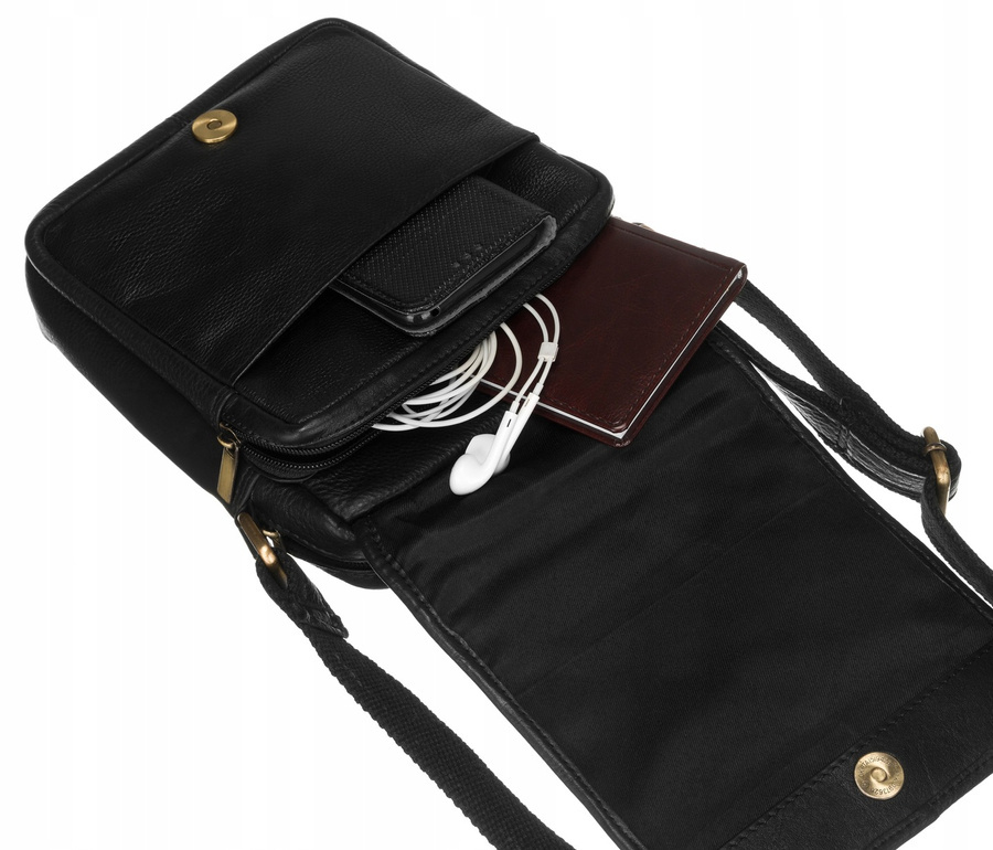Listonoszka ma 2 komory, do których dostępu zamek błyskawiczny oraz klapka zapinana na zatrzask magnetyczny. Wnętrze jednej z komór wyposażono w 2 kieszonki. Jedna z nich jest zapinana na suwak, druga otwarta przeznaczona na Twojego smartfona.