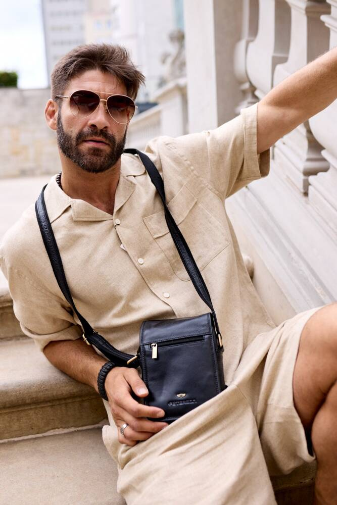Tył listonoszki zawiera kolejną, zamykaną bezpiecznym suwakiem kieszeń. Całość na materiałowej podszewce, która chronić będzie skórę przed uszkodzeniami podczas wkładania i wyjmowania z niej przedmiotów.