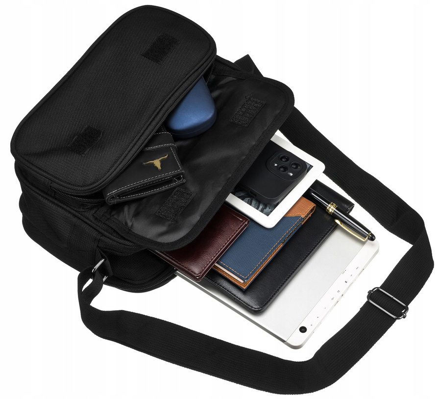 Dzięki dwóm pojemnym komorom wszystkie niezbędne rzeczy znajdą swoje miejsce. Z łatwością pomieścisz w niej tablet, portfel, telefon i dokumenty, zachowując porządek i łatwy dostęp do wszystkich przedmiotów.