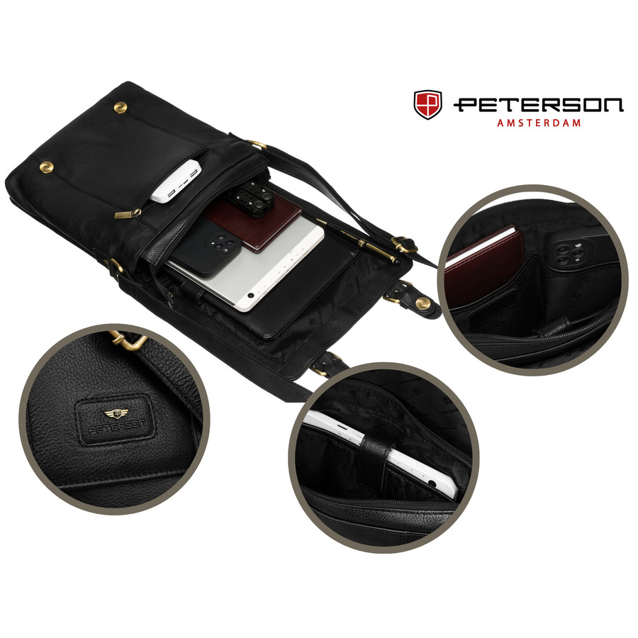 Miejska listonoszka męska ze skóry naturalnej w czarnym kolorze – Peterson