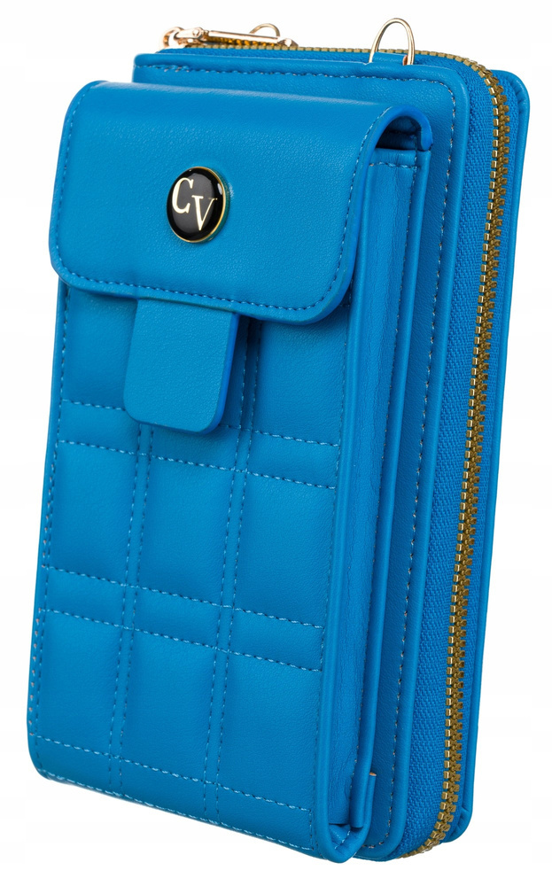 Na froncie torebko-portfela znajduje się praktyczna kieszeń na telefon o wymiarach 16,5 x 8 x 1,5 cm. Kieszeń posiada klapkę z zapięciem typu zatrzask.