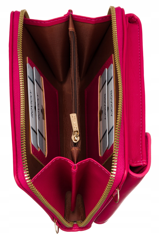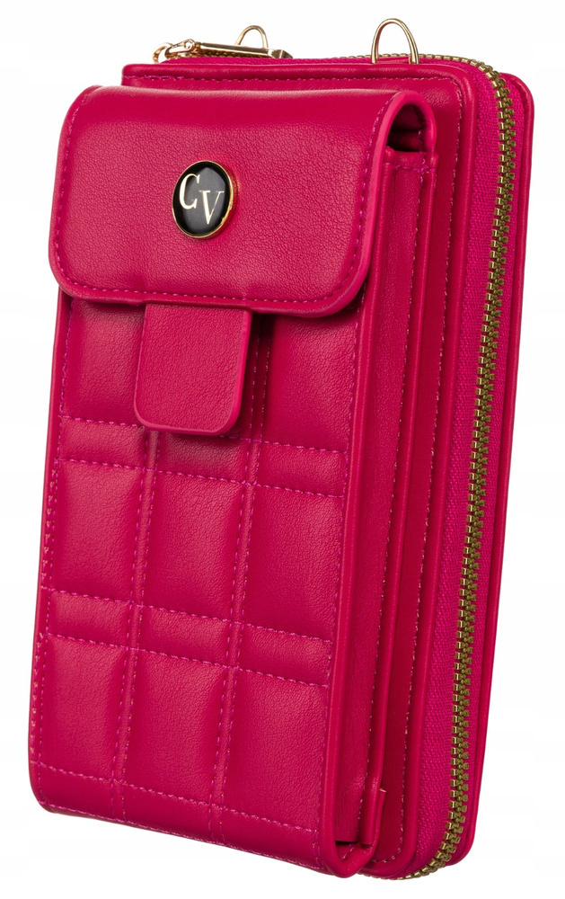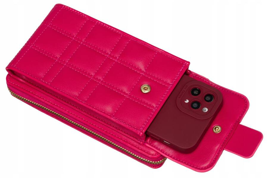 Na froncie torebko-portfela znajduje się praktyczna kieszeń na telefon o wymiarach 16,5 x 8 x 1,5 cm. Kieszeń posiada klapkę z zapięciem typu zatrzask.