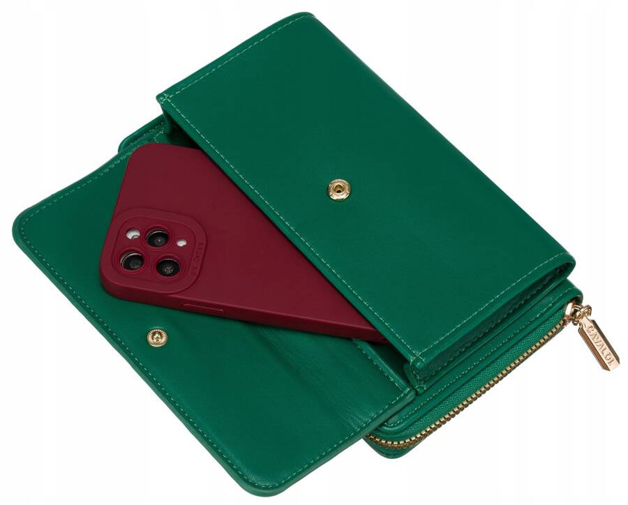 - Kieszonka na telefon | Z przodu torebko-portfela znajduje się niezwykle przydatna kieszonka na telefon zapinana na zatrzask;