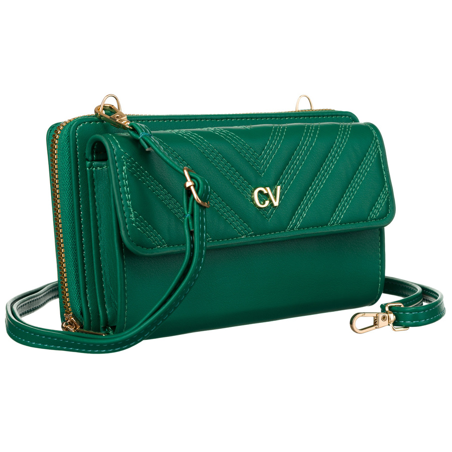 Na froncie torebko-portfela znajduje się praktyczna kieszeń na telefon o wymiarach 9×16,5×1,5 cm. Kieszeń posiada klapkę z zapięciem typu zatrzask.