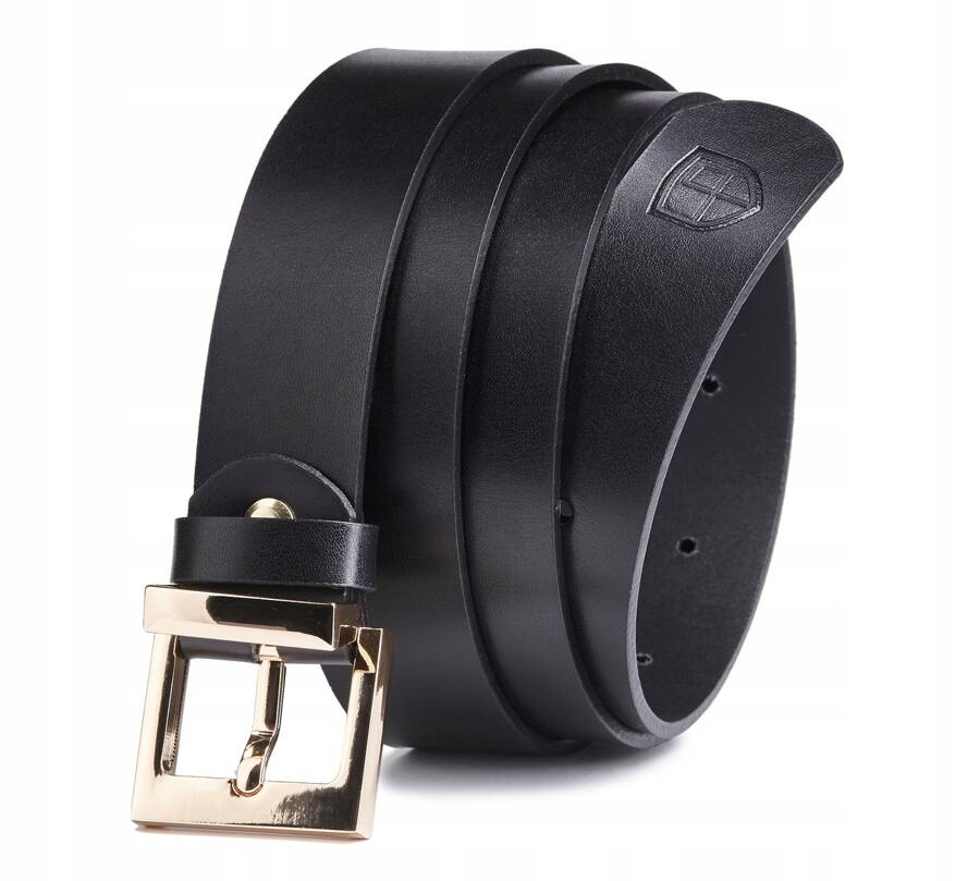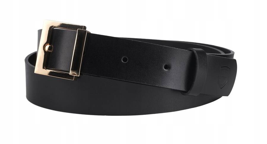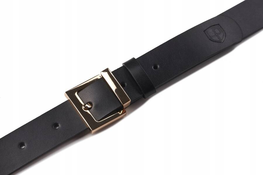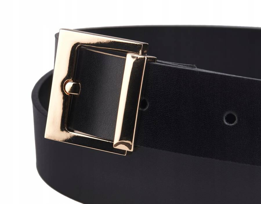 • Świetna klamra | Pasek posiada złotą metalową klamerkę w prostokątnym kształcie. Dalej znajduje się zawsze przydatna szlufka – umożliwia to bardzo wygodne użytkowania paseczka
